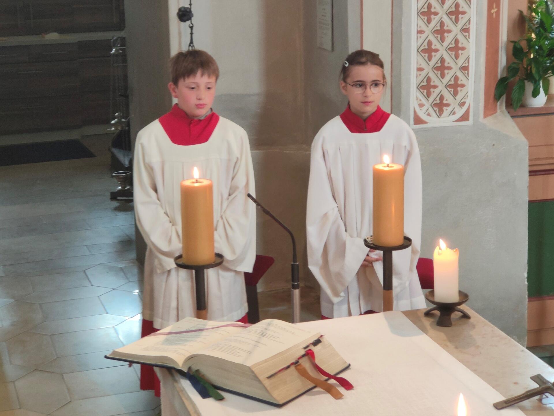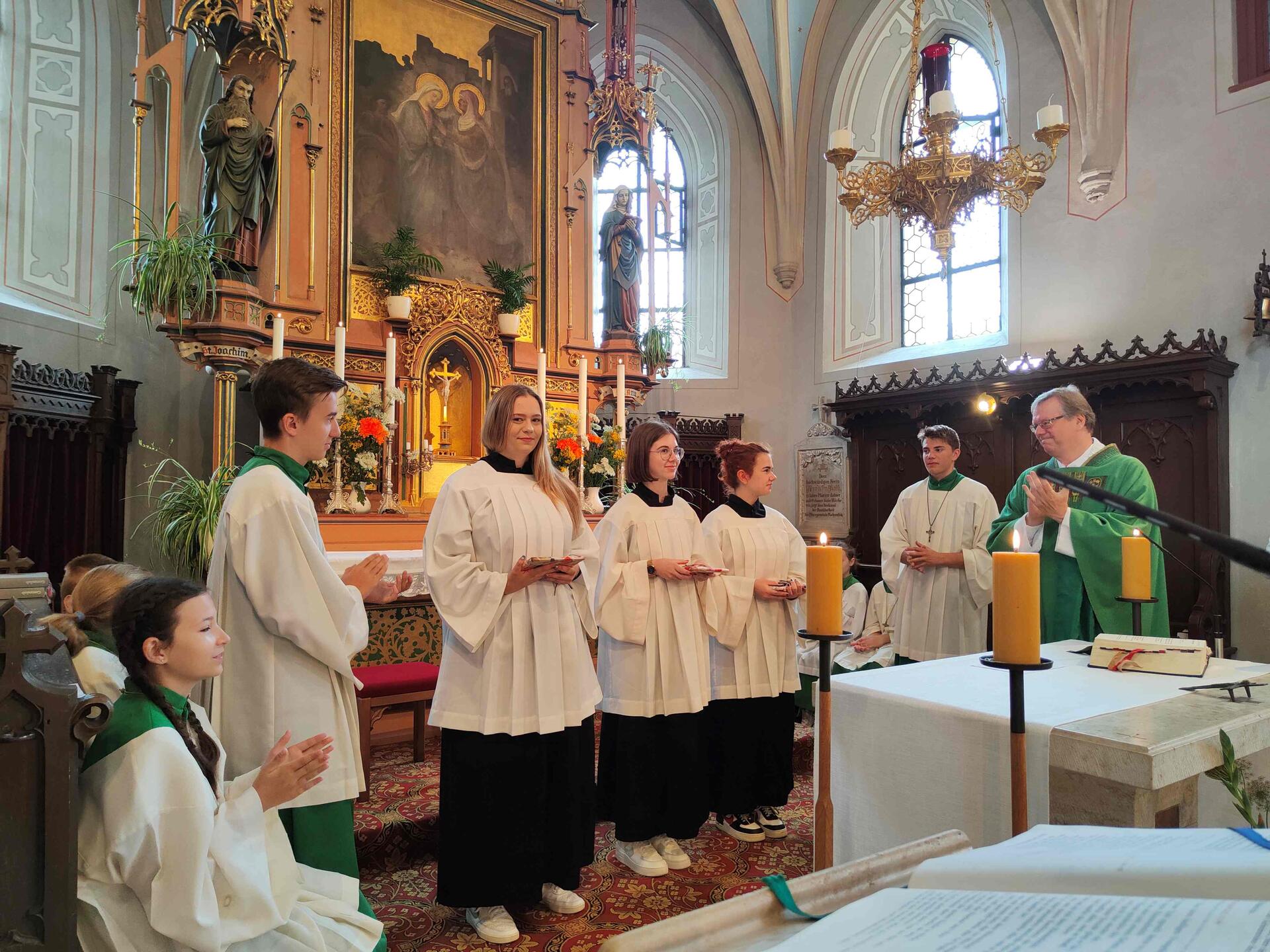 (Petra Karpf) Die einen kommen, die anderen gehen. Anna Waller und Paul Haberle wurden in den Kreis der Rohrenfelser Ministranten aufgenommen. Antonia Seemeier, Emma und Marika Honner sowie Anna-Lena Müller wurden feierlich verabschiedet. Die neuen Oberministranten sind Simon Hilsenbeck und Sebastian Seemeier.