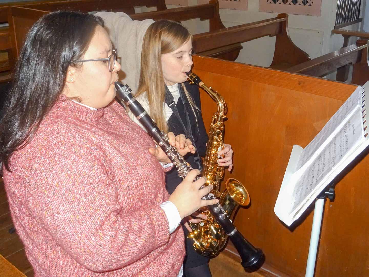 Begonnen haben wir den Nachmittag mit einer besinnlichen Adventsandacht in der Kirche. Die Adventsfeier wurde umrahmt von Beatrice Humbold, Klarinette, Antonia Felbermeir, Saxophon sowie Ottilie Rehm und Emilie Vollnhals, Gesang.