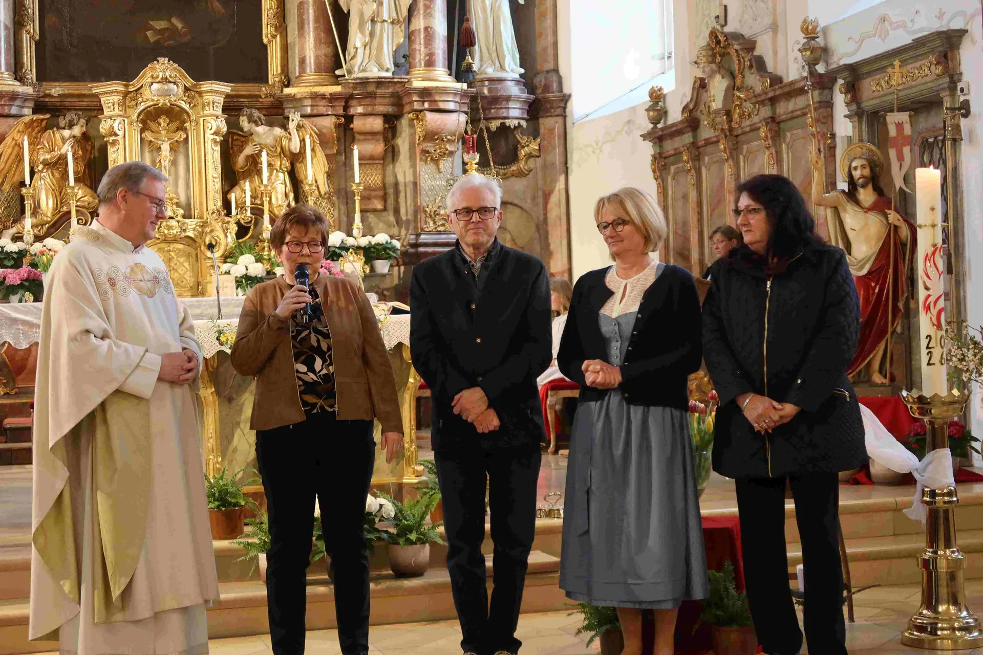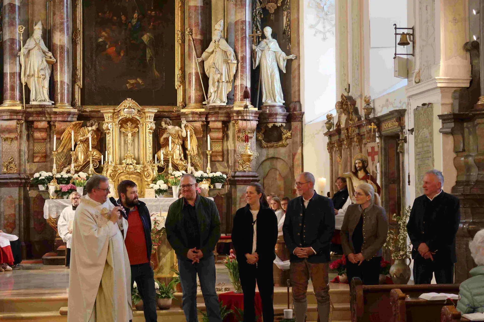 (Herbert Kohler) Über 70 Ehrenamtliche der Pfarrei Hl. Geist erlebten am Samstag, 18. April eine festliche Vorabendmesse und einen gemütlichen bayerischen Abend im Pfarrsaal. Die Idee dazu gab es schon länger, wurde nun aber im Rahmen der 300 - Jahrfeier der Pfarrkirche in die Tat umgesetzt. Alle Ehrenamtlichen, von der Pfarrbriefausträgerin bis zum Chorsänger, vom Kirchenverwaltungsmitglied bis zur Oberministrantin erhielten die Einladung – und sehr viele sagten gerne zu.