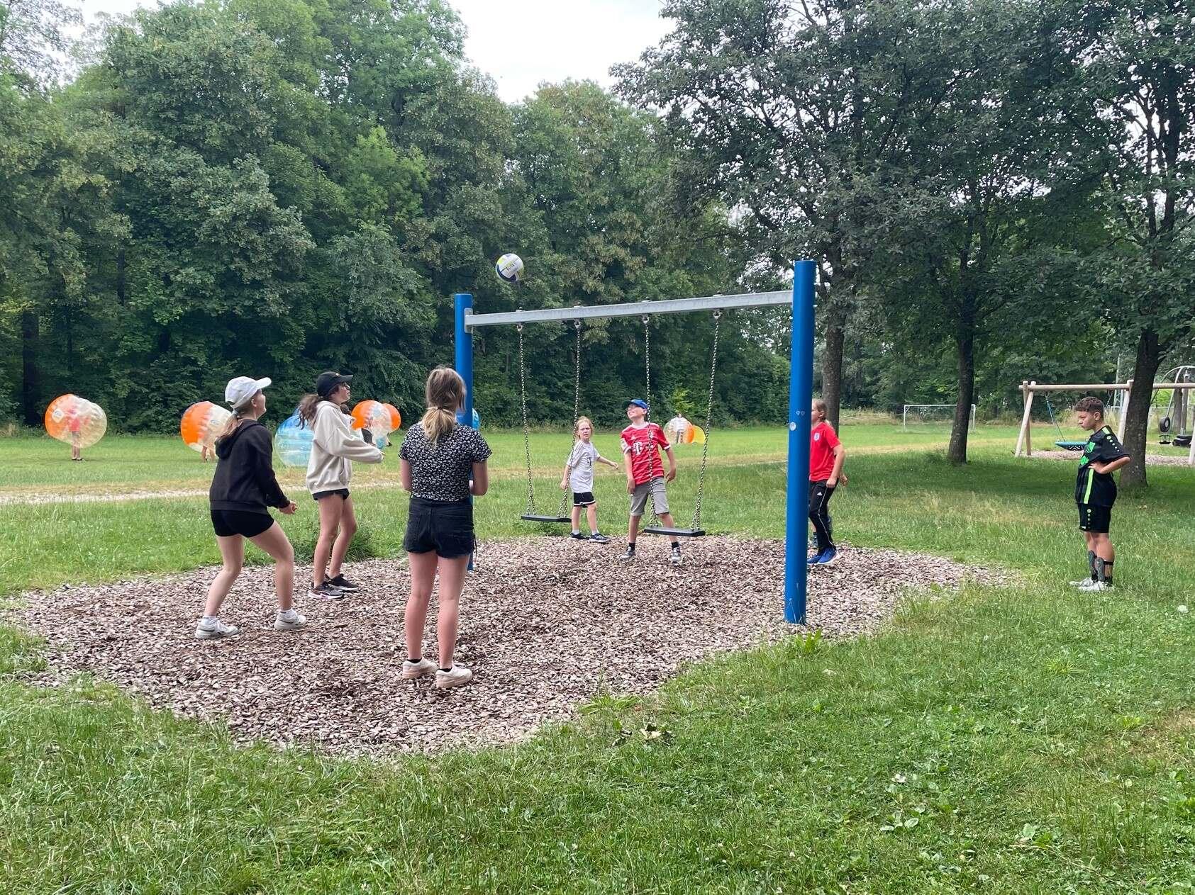 (Laura Kolb) Hier ein paar Schnappschüsse von der Bubble Soccer Aktion der Pfarrjugend Hl. Geist. Am Freitagnachmittag haben wir zusammen mit 15 Kindern das Bubble Soccer Wochenende eröffnet. Trotz kühler Temperaturen sind wir ziemlich ins Schwitzen gekommen. Am Samstag haben die Minis von St. Peter gleich weiter gemacht. Wir haben den Abend gemütlich am Lagerfeuer mit Stocktbrot und Marshmallows ausklingen lassen.