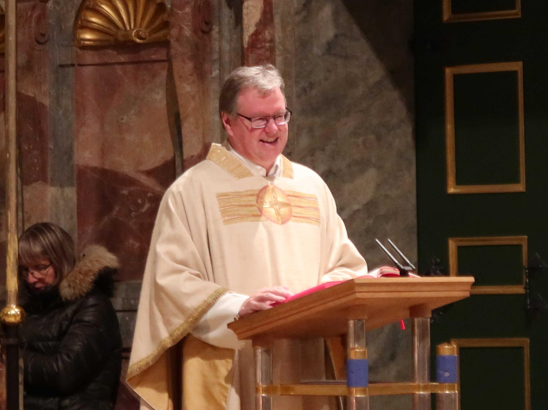 (Christine Jann) Am Sonntag nach dem Dreikönigfest wurde die „Taufe des Herrn“ gefeiert. In der Abendmesse in der Hofkirche begrüßte Stadtpfarrer Herbert Kohler den Chor Leuchtfeuer. Sie ständen auf der Empore in einer Reihe wie die himmlischen Engelschöre, freute er sich mit dem Blick nach oben auf die musikalische Gestaltung – genauso wie die zahlreichen Kirchenbesucher in der Hofkirche.