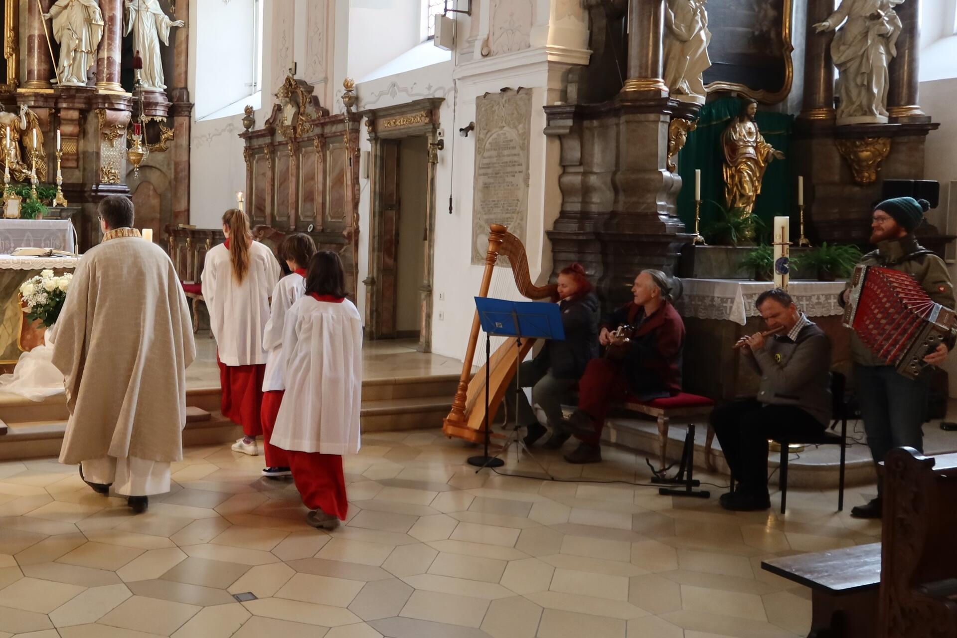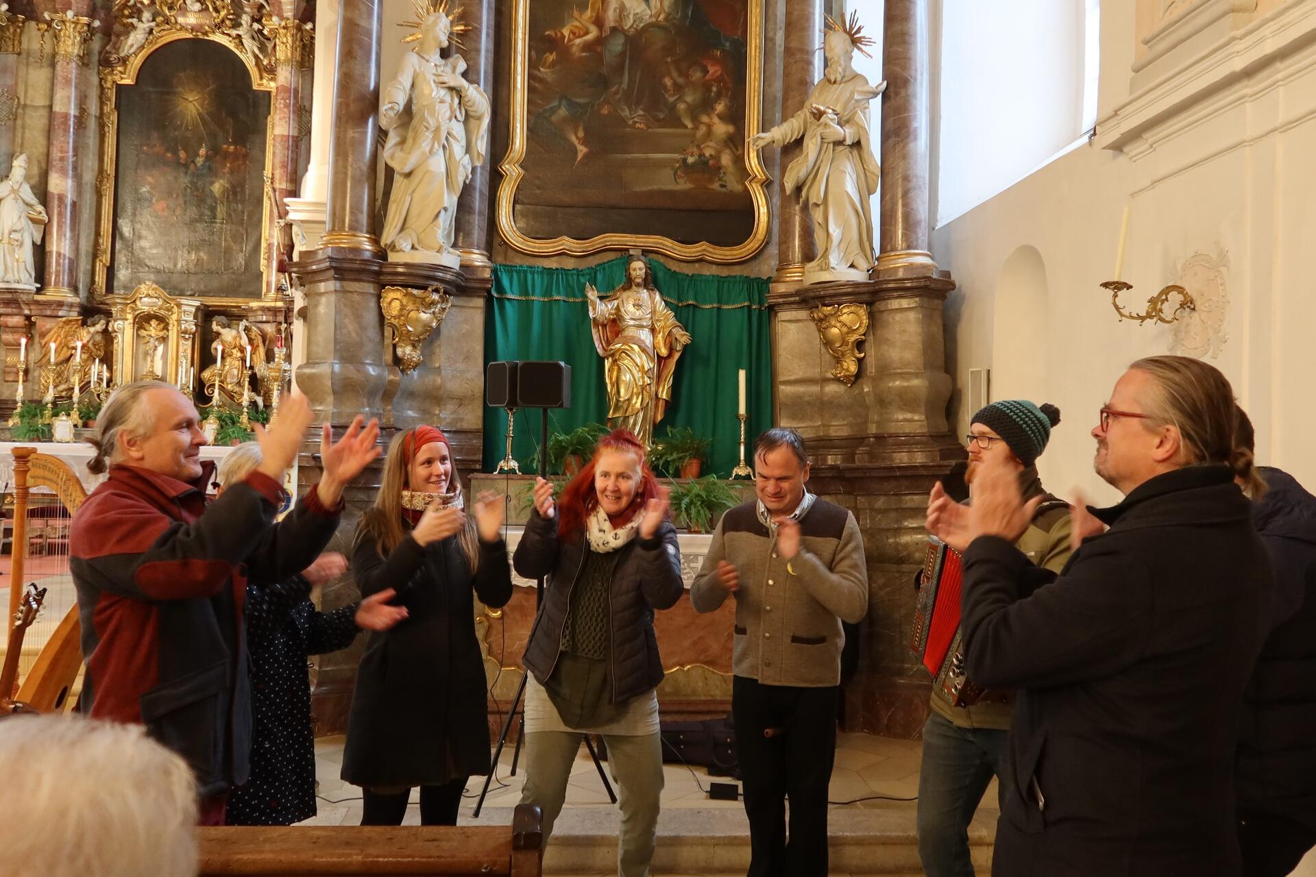 Authentische Volksmusik aus dem Salzkammergut und dazu afrikanische Spirituals präsentierte ein kleiner Chor unter der Leitung von Conny Kirsch. Mit Harfe, Akkordeon, Flöte und v. a. mit ihren wunderbaren A-Capella Gesang begeisterten die acht Österreicher, die durch private Kontakte nach Neuburg kamen, die Gläubigen.
