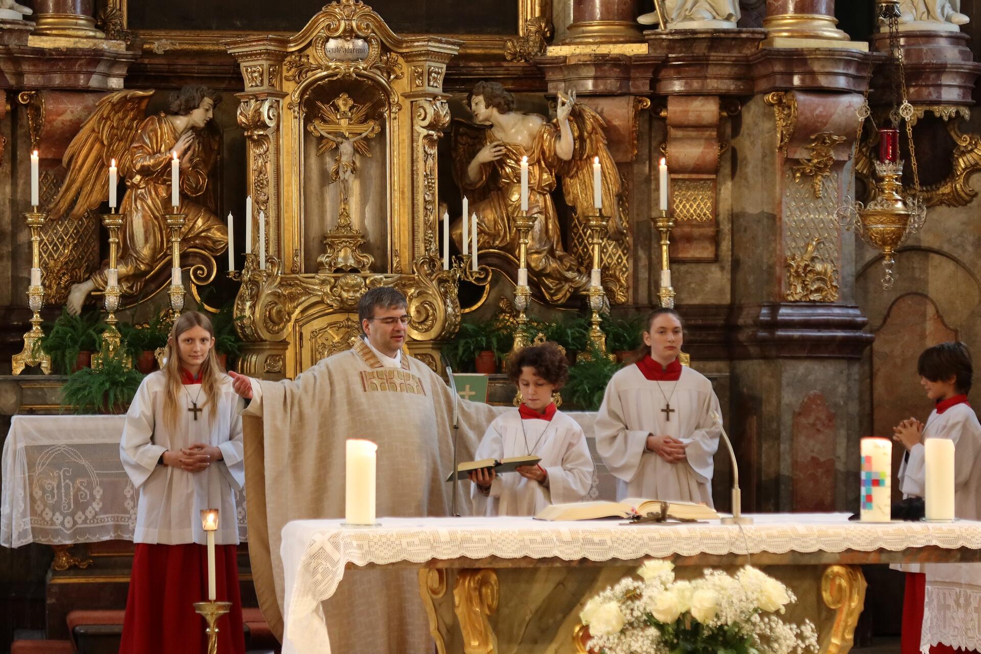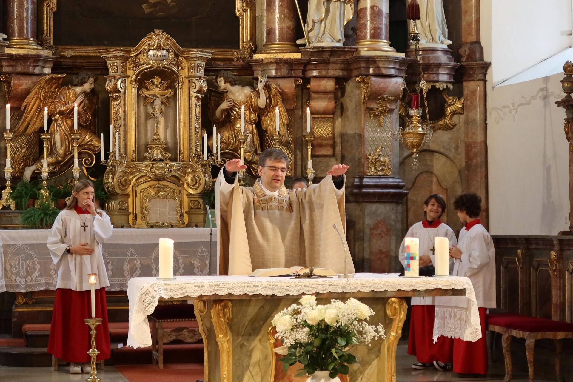 (Christine Jann) „Ich wünsche Ihnen ein schönes Silvester und einen guten Rutsch ins Neue Jahr!“ begrüßte Pfarrer Dominic Leutgäb am Christkönig-Sonntag die verdutzten Kirchenbesucher in der Hl. Geist Kirche. Er erinnerte damit daran, dass das Christkönigsfest den letzten Sonntag im Kirchenjahr markiert, bevor mit dem 1. Advent der neue Jahreszyklus beginnt.