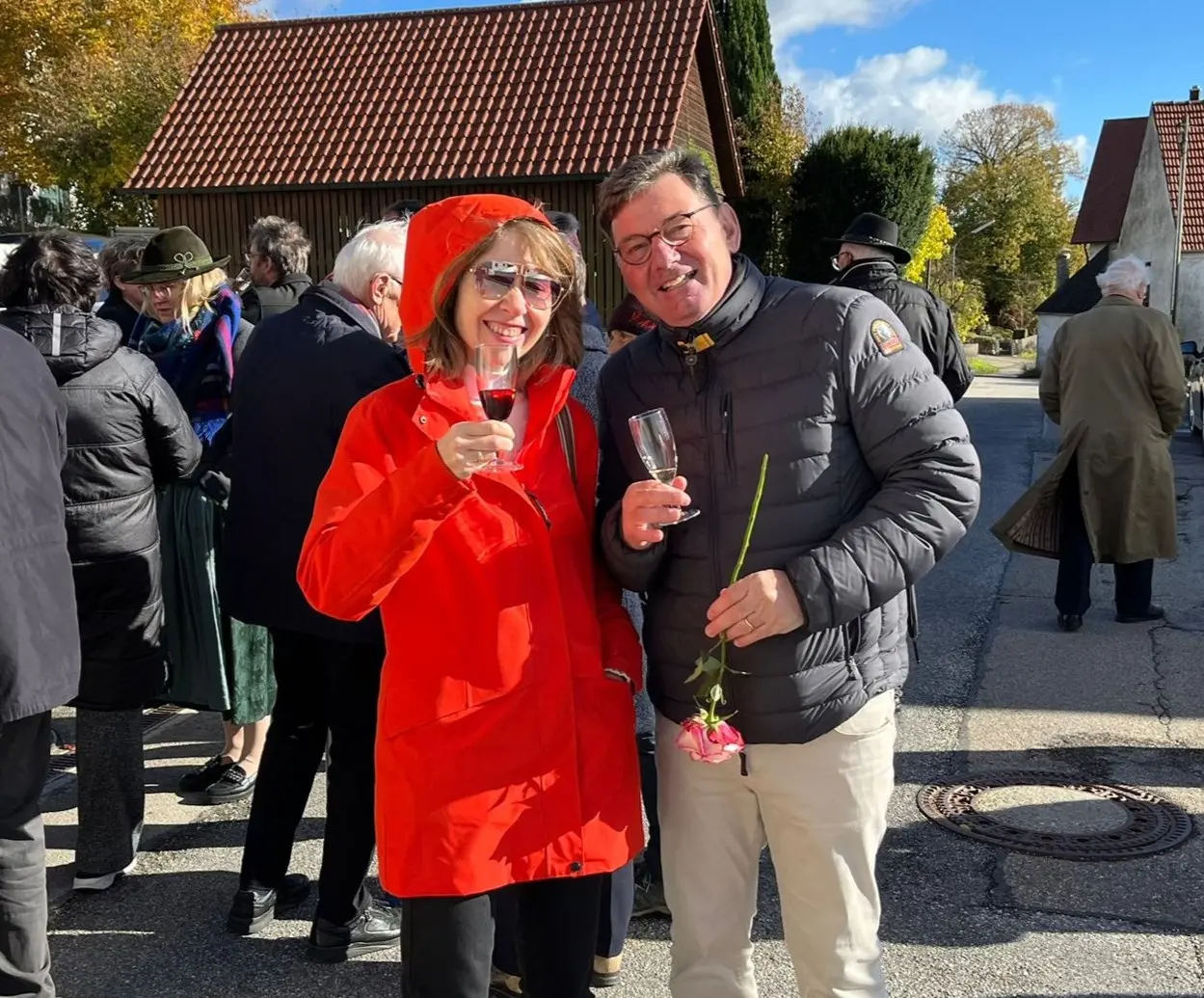 Zum Abschluss lud der der Pfarrgemeinderat noch zu einem kleinen Sektempfang. So standen die Kirchenbesucher bei zwar eisigem Wind, aber immer wieder wärmenden Sonnenstrahlen noch eine Weile beisammen und unterhielten sich rege.