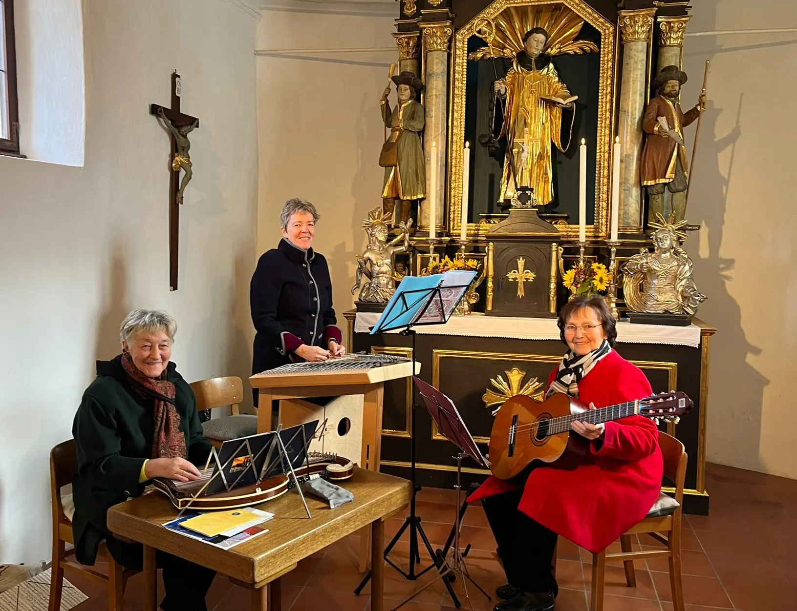 (Christine Jann) In der vollbesetzten Kirche St. Leonhard feierte Stadtpfarrer Herbert Kohler einen festlichen Gottesdienst zum Abschluss der notwendigen Sanierungsarbeiten. Musikalisch wurde er von der Neuburger Saitenmusik mit Frau Blind (Zither), Frau Haidl (Hackbrett) und Frau Braun (Gitarre) begleitet. Die freiwillige Feuerwehr und der Schützenverein waren mit ihren Fahnenabordnungen vertreten.