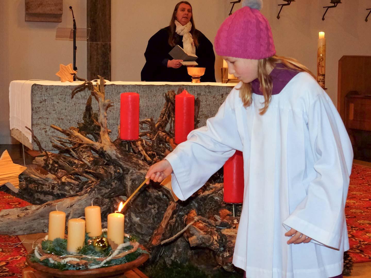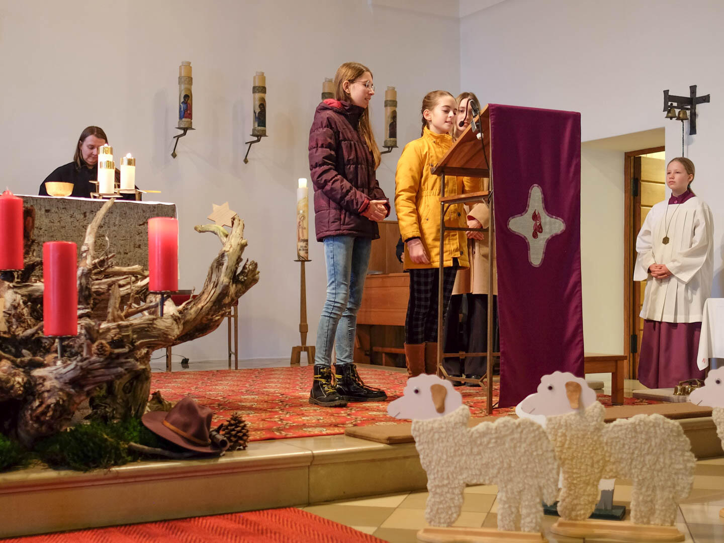 Nach der Segnung des Adventskranzes nahmen die Kinder die Schafe unter ihre Arme und trugen sie in die Kirche.