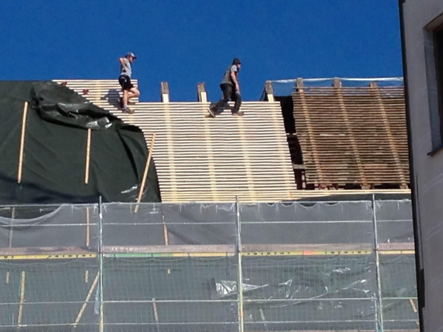 Unsere Bildergalerie zeigt den Baufortschritt im September. Schneefanggitter, Dachrinnen und Wassersammler sind aus Kupfer, sehr haltbar und sehr schick.
