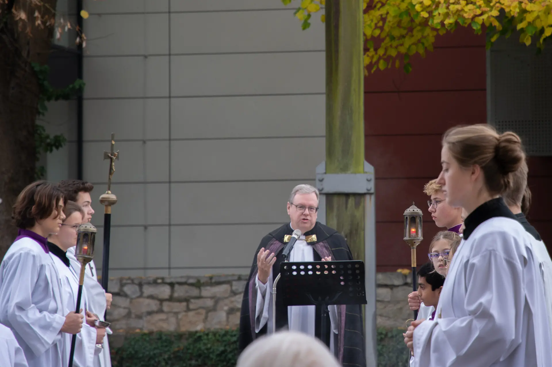 (Christine Jann) „Eine Seele von Mensch, kennen Sie diesen Ausdruck noch?“ fragte Pfarrer Herbert Kohler die zahlreichen Besucher, die sich an Allerheiligen zum Totengedenken auf dem Alten Friedhof versammelt hatten. „Seelenmenschen“ nannte Kohler sie auch und meinte damit die „guten Geister“, die ganz viel Licht ausstrahlten, die einem Raum geben, bei denen man gerne ist, weil sie einfach guttun. Sicher treffe das auf viele zu, die hier auf dem Friedhof lägen, war sich der Seelsorger sicher.