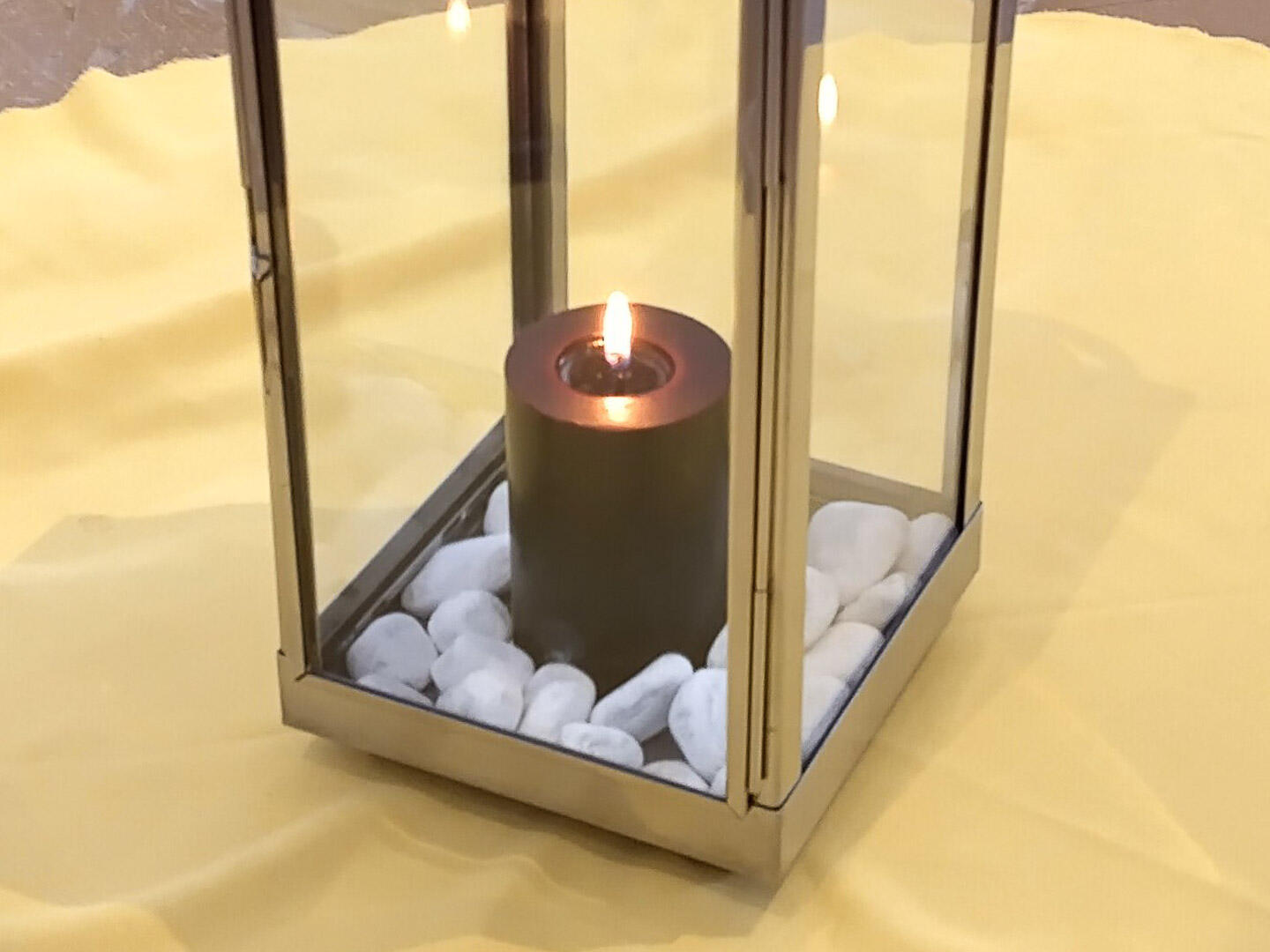 Während der Lesung entstand im Mittelgang ein bildlicher Weg durch die sieben Tage der Schöpfung. In seiner Predigt nahm Pfarrer Leutgäb dann das Danken auf und ging dabei darauf ein, dass auch Jesus, wenn er sich zu Tisch gesetzt hat, immer zunächst seinen Dank ausgesprochen hat.