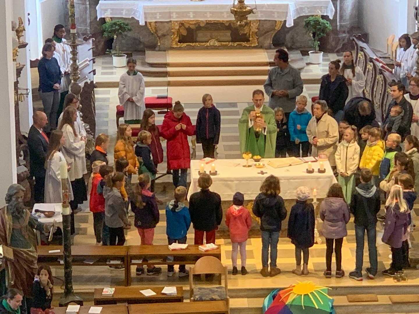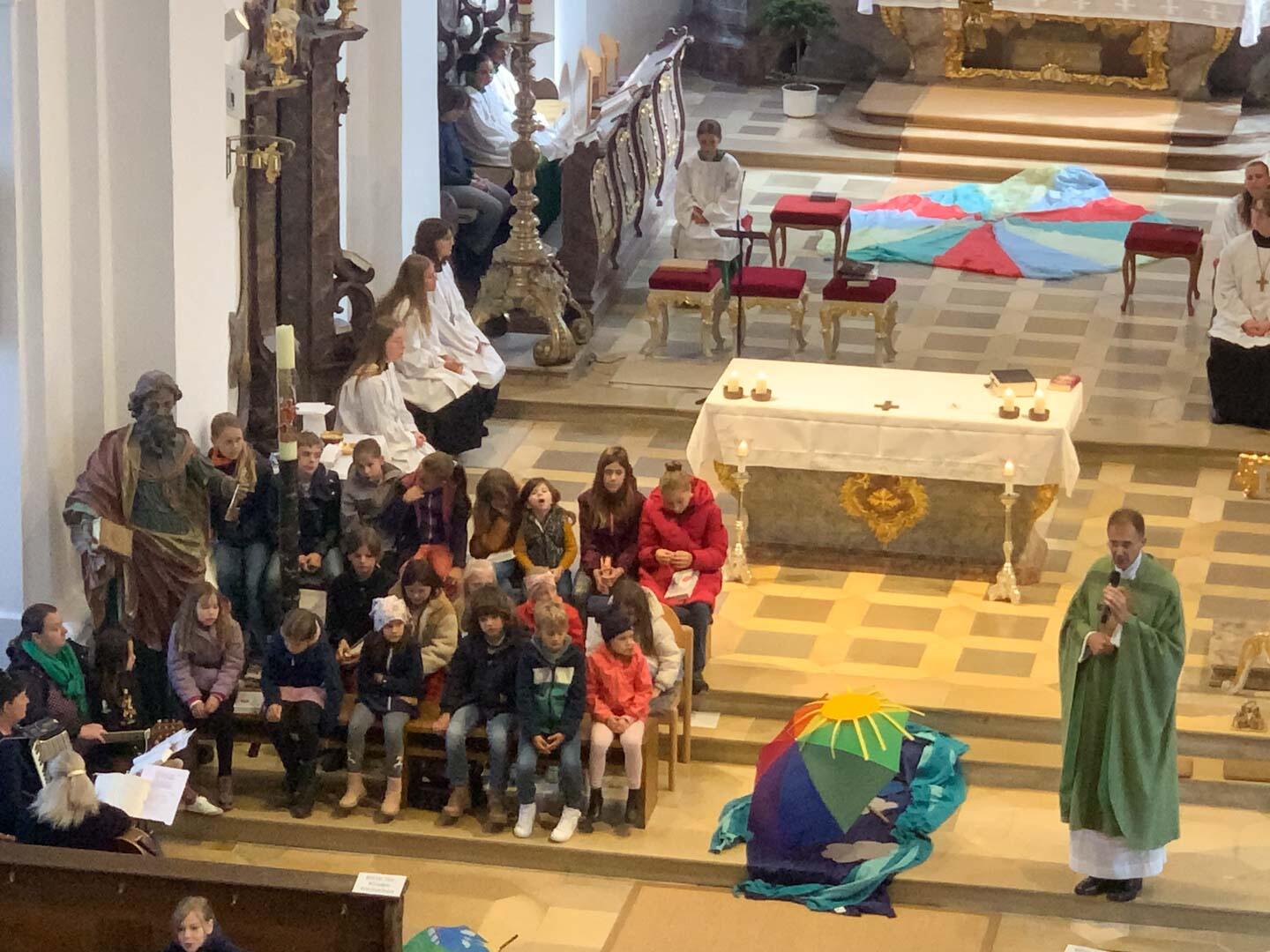 Sofort kamen die Kinder auf die Eltern, Großeltern, Freunde, ... In der Lesung und im Evangelium hörten wir dann auch noch davon, dass zusätzlich immer auch noch Gott unser Schirm ist, auf den wir immer vertrauen dürfen.