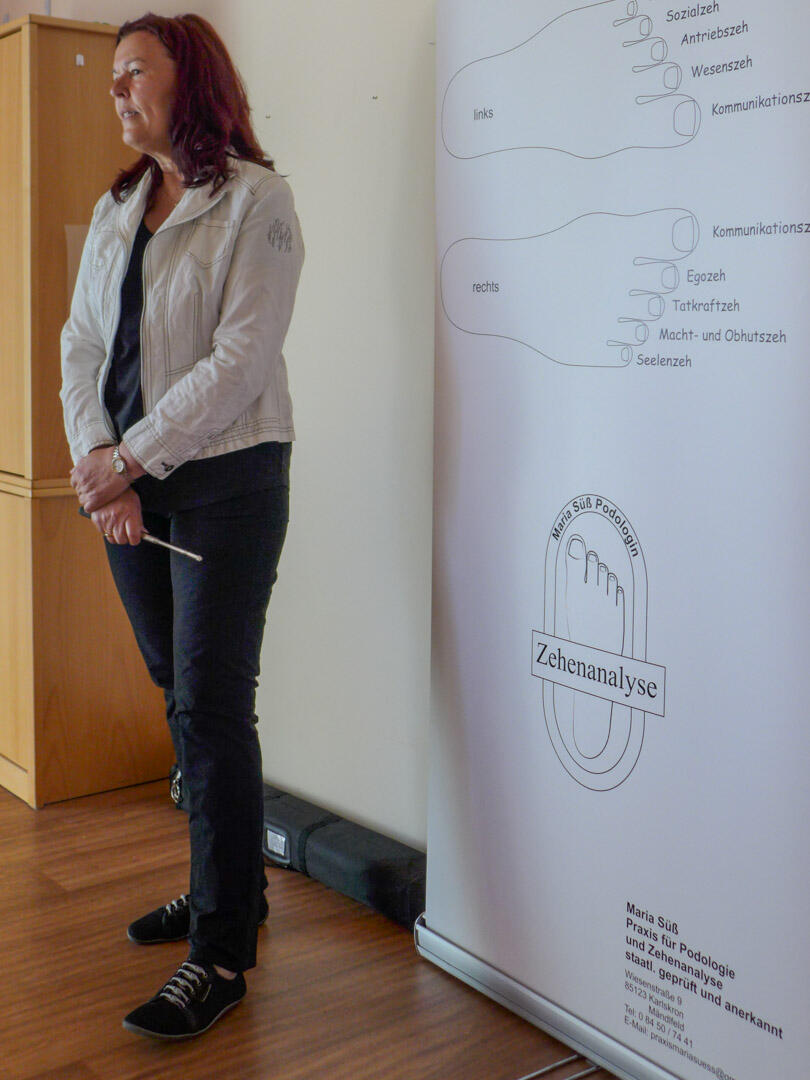 Aufmerksam hörten die Frauen im Anschluss dem kurzweiligen Vortrag von Maria Süß zu. Erstaunte Gesichter konnte man beobachten, als die Fußspezialistin zum Beispiel den Zusammenhang zwischen Zehenabstand und Prüfungsangst erklärte.