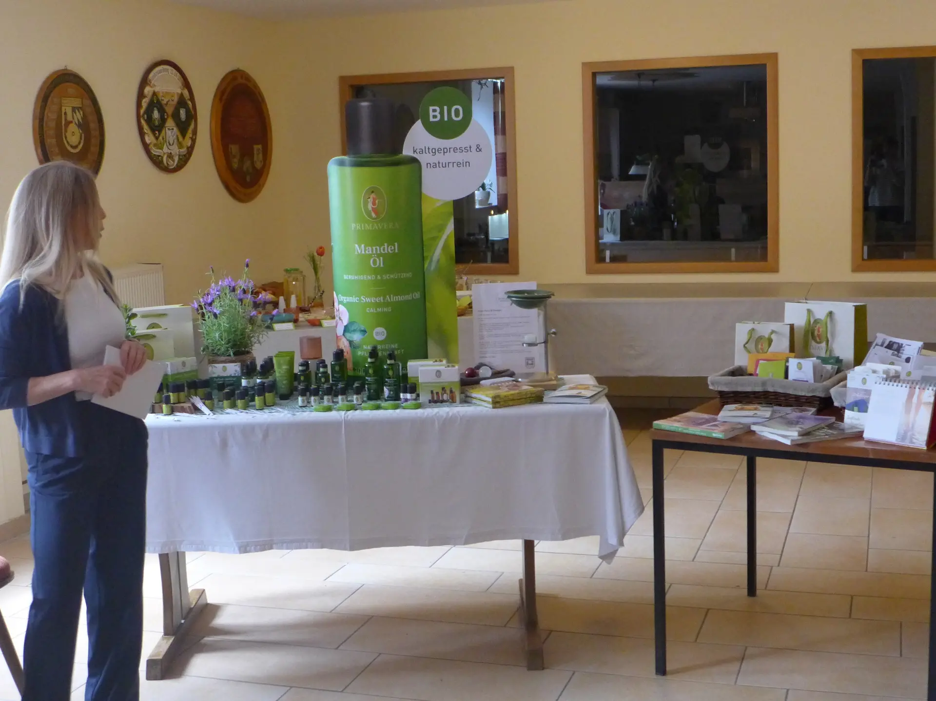 Der Vormittag verging wie im Flug. Nachdem sich die Frauen am leckeren Büffet bedienten und auch noch gemütlich zusammensaßen, entführte Aromafachberaterin Patricia Köpf in die Welt der ätherischen Öle. Sehr eindrucksvoll stellte sie diverse Öle, wie Lavendel, Orange, Pfefferminze, Teebaum und Zirbelkiefer vor. Sie erklärte die Wirkung und die Einsatzmöglichkeiten. Kurz um – es war wieder eine sehr schöne Veranstaltung und am Ende hat man in viele zufriedene Gesichter geschaut.