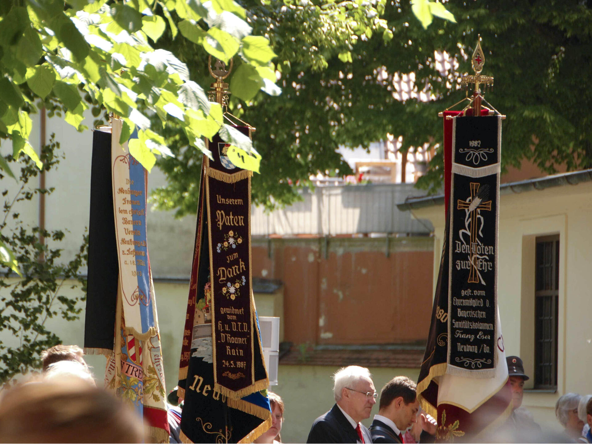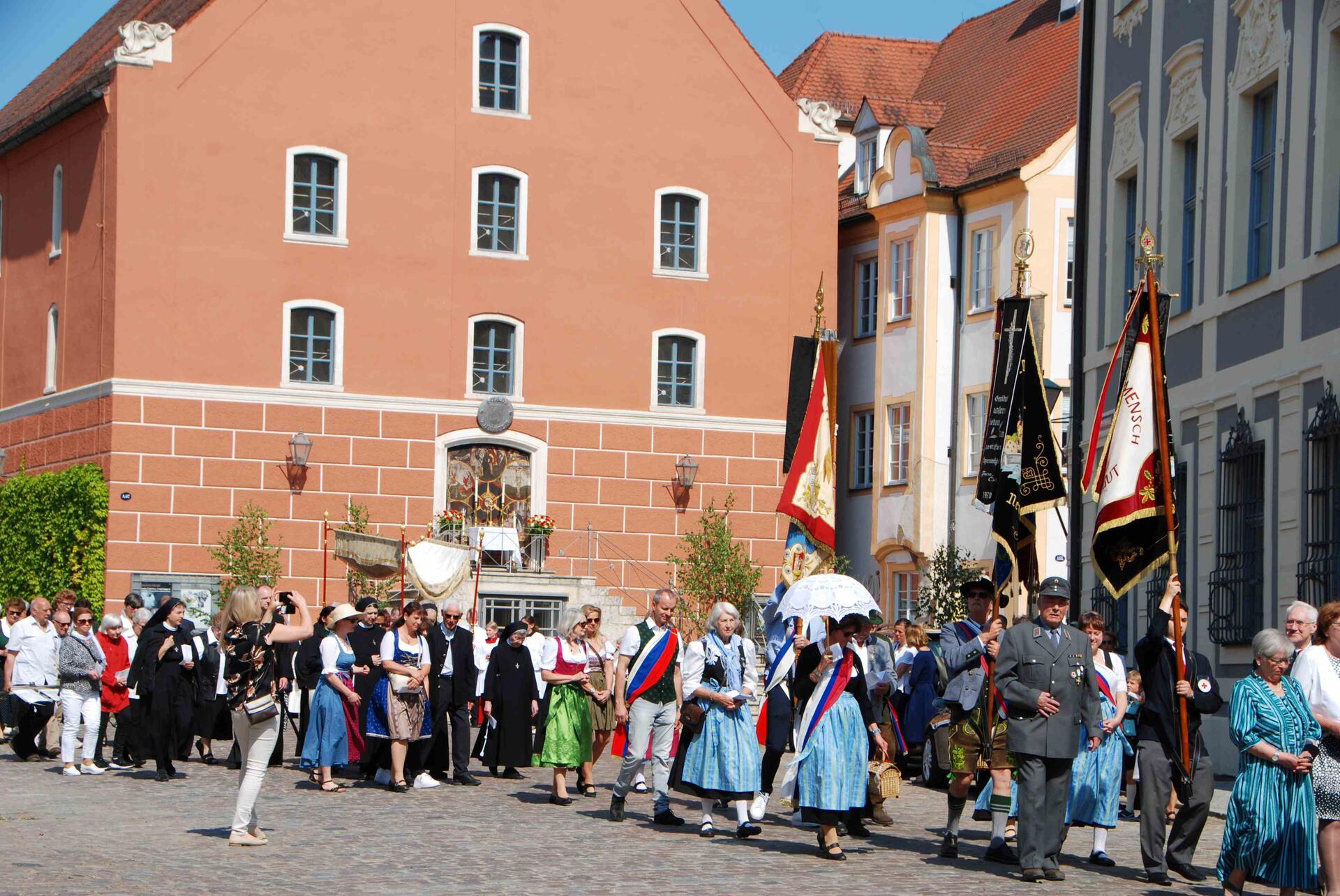 Nach der Messe reihten sich in den Prozessionszug neben einer großen Ministrantenschar und den Fahnenabordnungen auch zahlreiche Kommunionkinder, Kirchenchor, die Vertreter der Politik sowie Ordensangehörige und die Gläubigen ein.