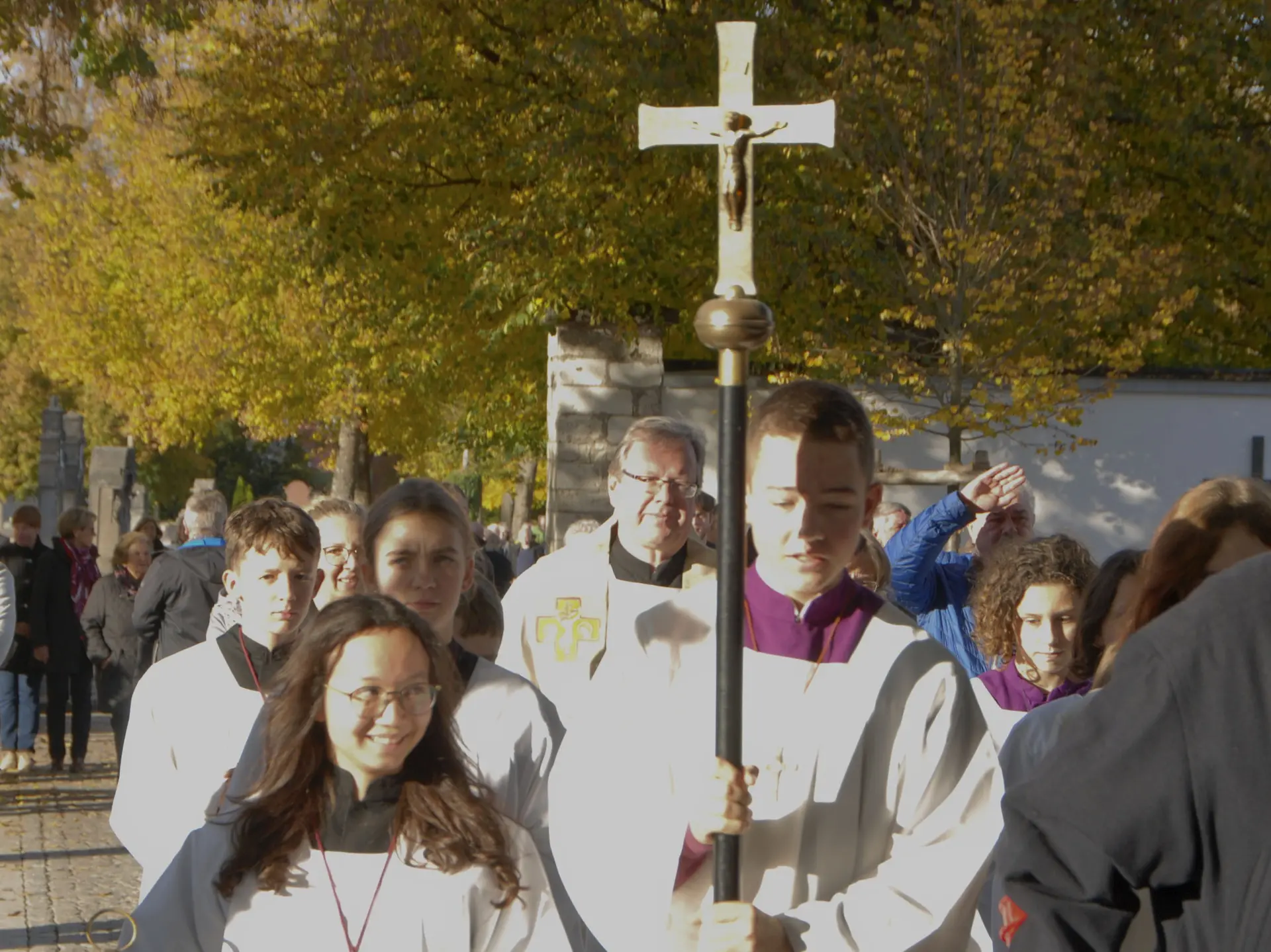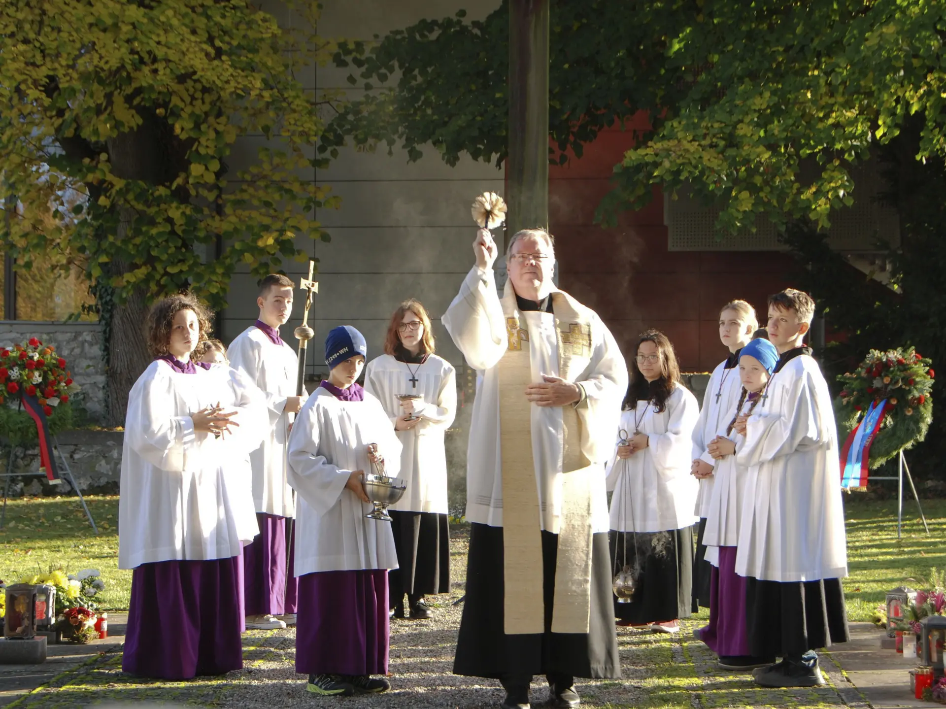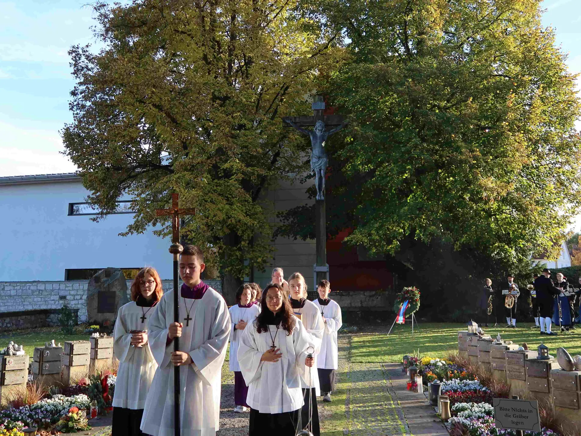 Das sonnig warme Wetter passte so gar nicht zur Jahreszeit, sehr wohl aber zum Hochfest Allerheiligen, wie Stadtpfarrer Herbert Kohler gleich zu Beginn der Gedenkfeier feststellte und an die Botschaft des Festes erinnerte: unser Leben führe nicht in ein dunkles Grab, sondern zum Licht Gottes.