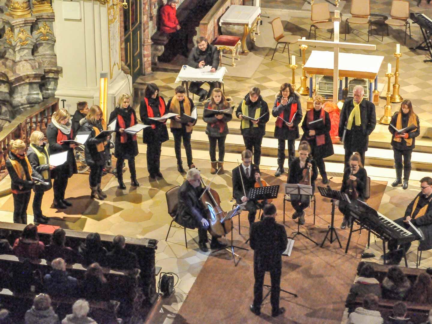 Monika berichtete auf Fragen von Pfarrer Kohler über den Weg, der sie zum Studium der Religionspädagogik führte. Ihre Kindheit verbrachte sie in Rohrenfels. Sie zog mit 12 Jahren mit ihrer Familie nach Neuburg. Doch schon mit 10 Jahren wollte sie mit ihren Neuburger Freundinnen in St. Peter ministrieren. Mama Margit, damals schon Sängerin im Kirchenchor und im Chor Leuchtfeuer, begeisterte Moni für die Musik. Ihre Musikalität förderte der verstorbene Josef Götzenberger mit Klavierunterricht. Schon bald spielte Monika Orgel in den Kirchen in und um Neuburg.