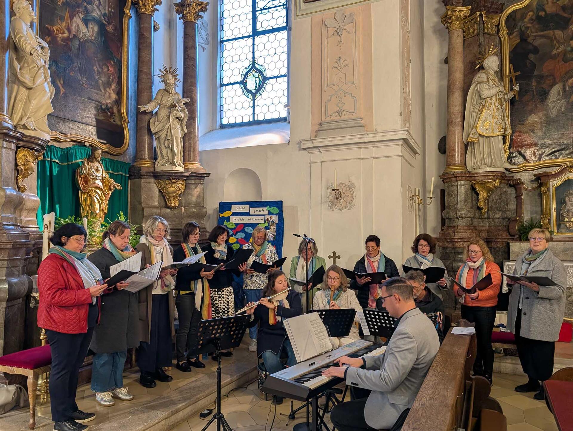 Passend zu diesem Jubiläum wählte Pfarrer Herbert Kohler als Lesung den Ps 150, der das Lob Gottes zum Inhalt hat: das Singen, Spielen und Tanzen für Gott. Genau dem habe sich die Musikgruppe Hl. Geist verschrieben.