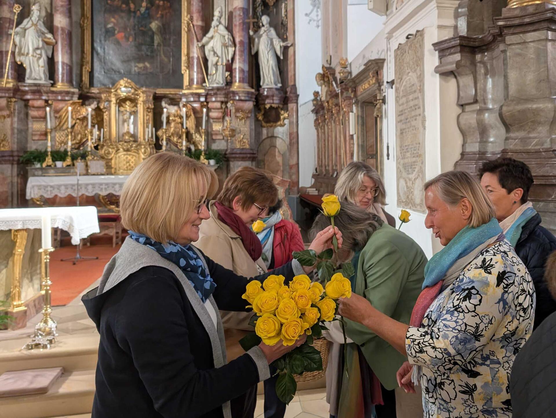 Wie sehr die Kirchengemeinde Hl. Geist ihre Musikgruppe schätzt, konnte man an dem kräftigen und langen Applaus erkennen, den sie den Musikern am Schluss spendete. Als kleines Dankeschön überreichten Inge Regnat und Maria Schiller-Münzer im Namen der Pfarrei jedem eine Rose und ein Päckchen Tee.