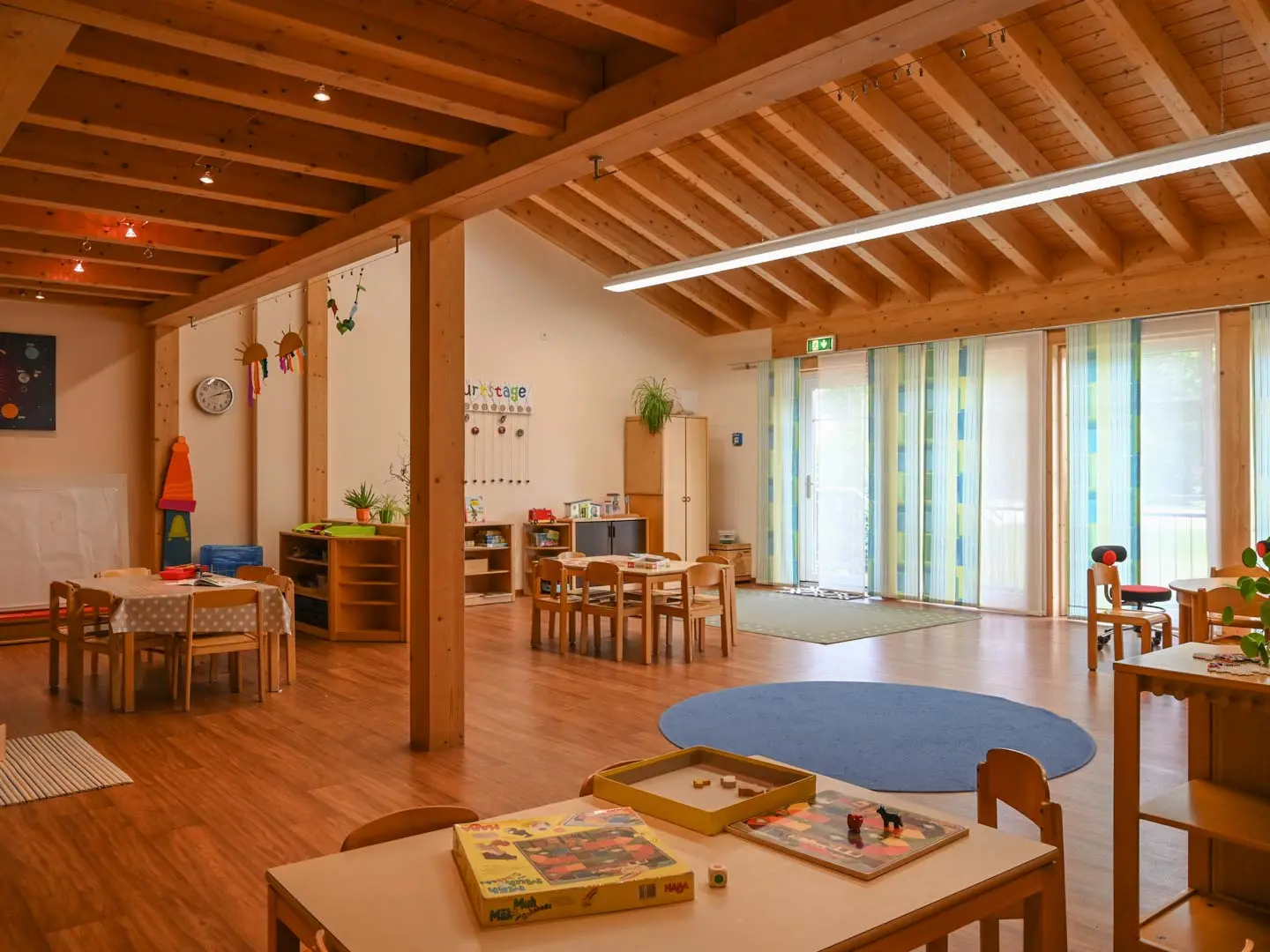 Es ist richtig praktisch, dass das Gemeindegebäude und das Kindergartengebäude in einem Haus untergebracht sind. So waren wenigsten die Wege kurz und alle Kinder bleiben zusammen.