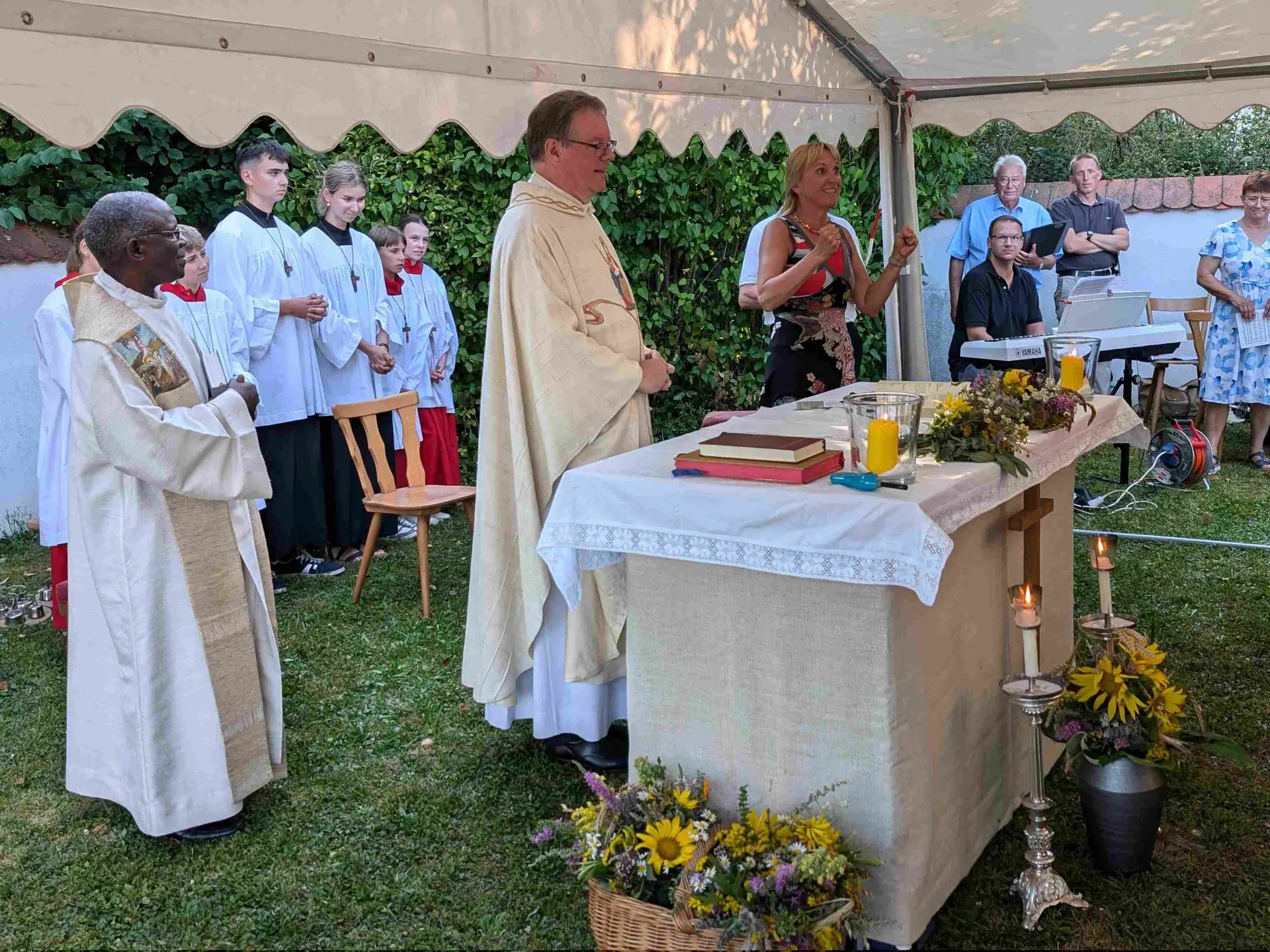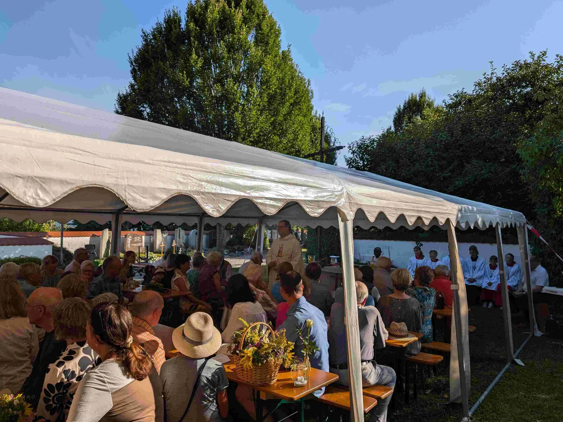 (Christine Jann) In Bittenbrunn wurde das Patroziinium bei herrlichem Wetter im Pfarrgarten gefeiert. Pfarrer Herbert Kohler zelebrierte mit Pfarrer John Kyazze im vollen Festzelt im Pfarrgarten den Gottesdienst, der vom Kirchenchor "Laetare" musikalisch begleitet wurde.