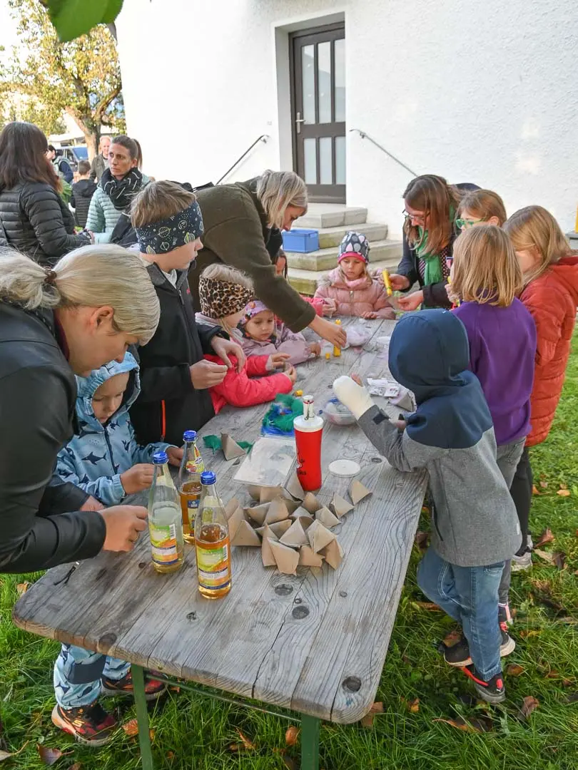 Nach dem Gottesdienst luden wir noch zum Verweilen ein. Die Kinder bastelten als kleine Erinnerung und Gedankenstütze Spatzen, während die Eltern miteinander ins Gespräch kamen.