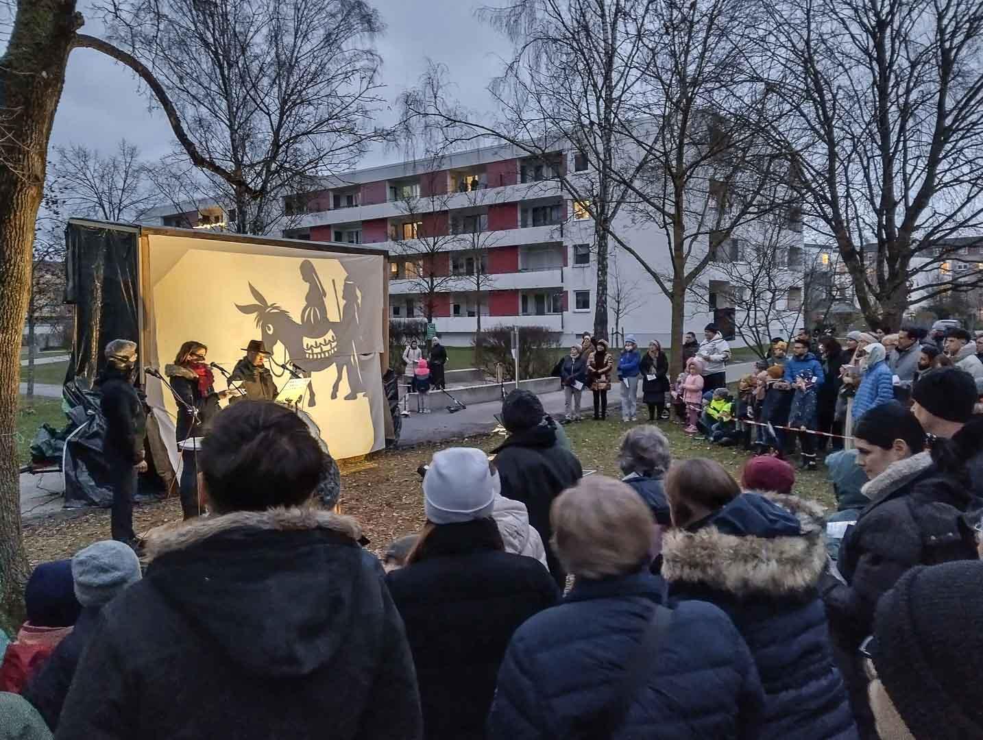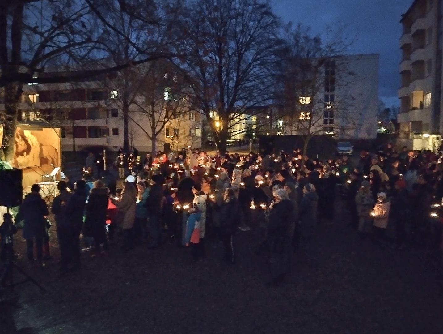 (Andreas Dachs) Mitten zwischen den Hochhäusern des Schwalbangers versammelten sich am Heiligabend über 400 Menschen, um miteinander die Geburt Jesu zu feiern.