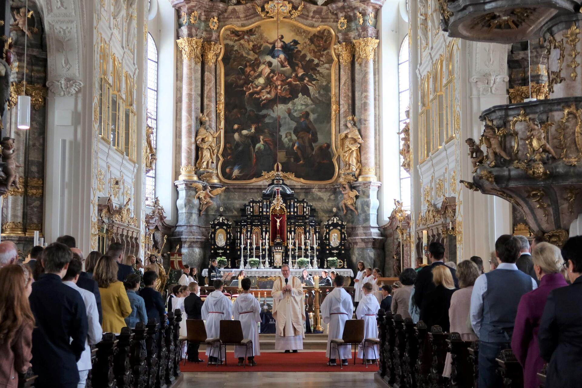 (Christine Jann) Am Sonntag kamen die Erstkommunionen mit den Feiern in der Hofkirche zu Ende. Wie in Hl. Geist wurden die Kommunionkinder auf zwei Gruppen verteilt, so dass seit Ostern acht Gottesdienste gefeiert wurden, um 65 junge Christinnen und Christen zur ersten Hl. Kommunion zu führen.