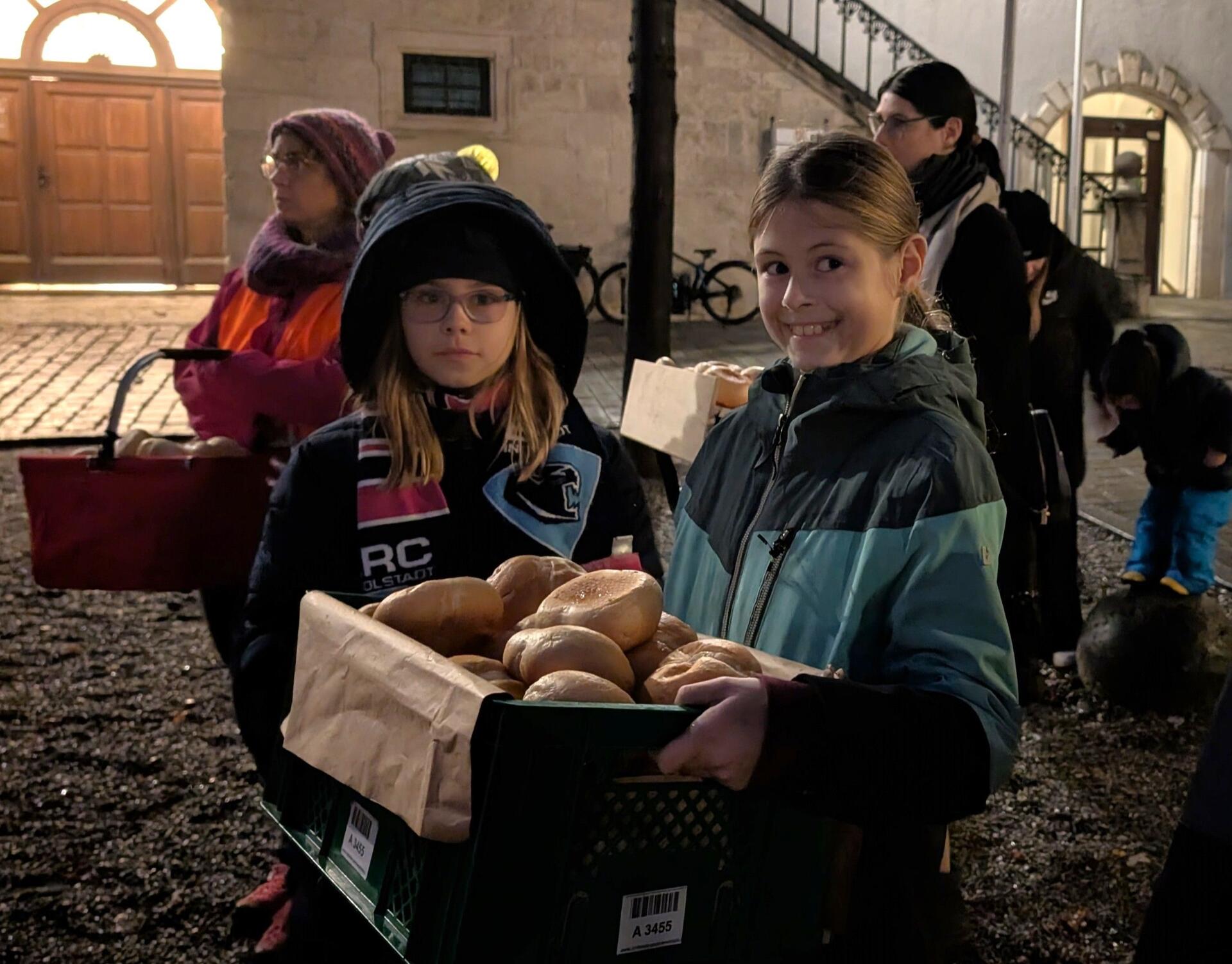 Wie gut sich Teilen anfühlen kann, erlebten die Kleinen am Ende der Feier, als Martinsbrote – mit der Aufforderung sie untereinander zu teilen.