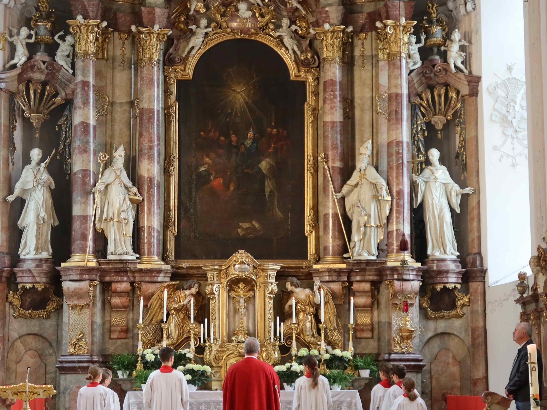 Der Festgottesdienst wurde vom Kirchenchor unter der Leitung von Michael Bachmann musikalisch begleitet. Mit der „Missa festiva“ von Hubert Zaindl und dem „Canta domino“ von Hans Leo Hassler hatte Chorleiter Michael Bachmann sehr gefällige Chorstücken ausgewählt. Mal leise und mal dynamisch begeisterten Organist und Chor die Kirchenbesucher und ließen das Pfingstfest auch musikalisch spürbar werden.