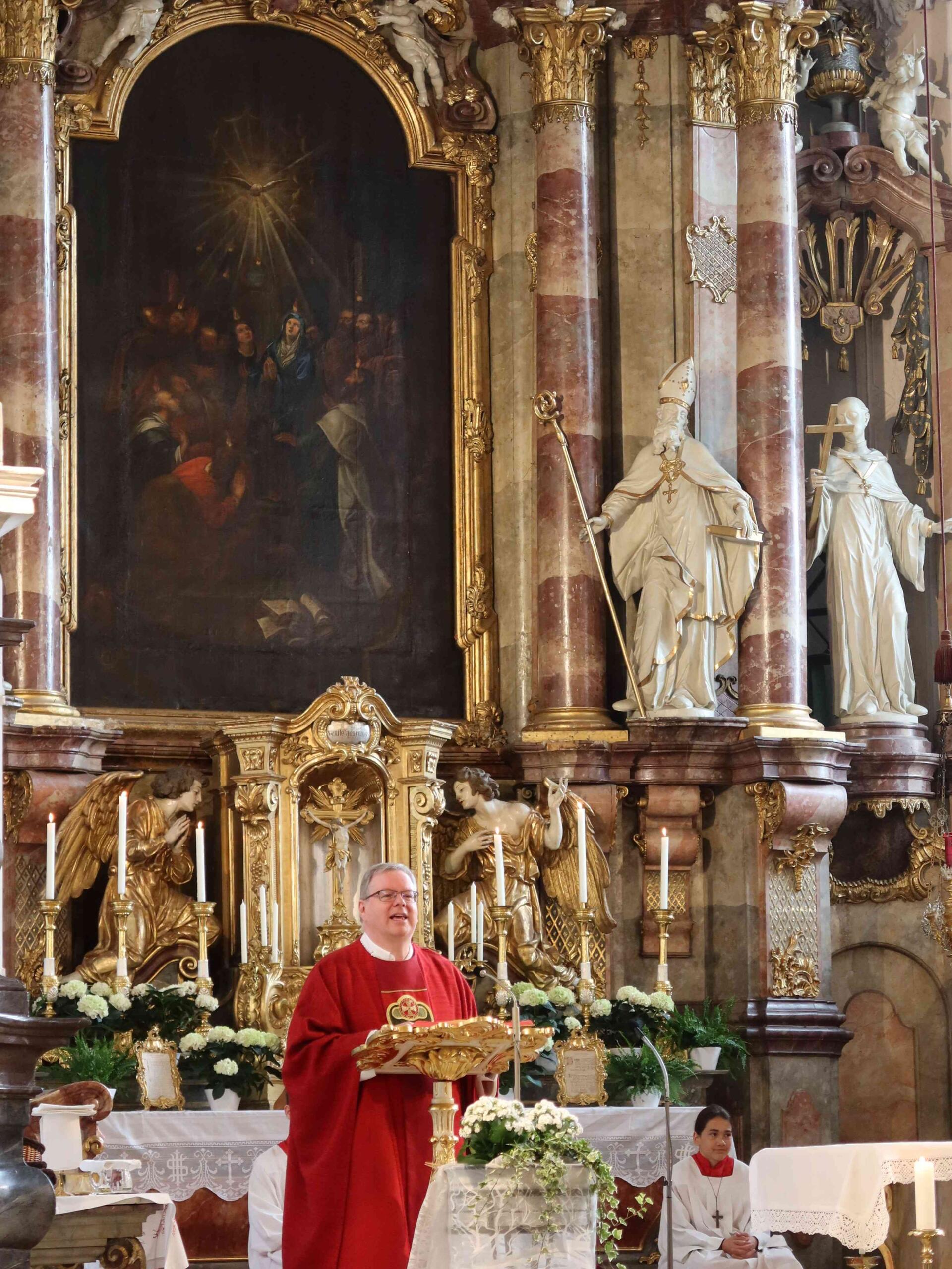 An dem Tag, an dem die Kirche die Sendung des Heiligen Geistes feiert, betonte Pfarrer Herbert Kohler v.a. das leise Wirken des Hl. Geistes: er sei uns als Beistand gesandt und als Tröster, man könnte auch sagen Mutmacher, den es gerade in unserer Zeit brauche.
