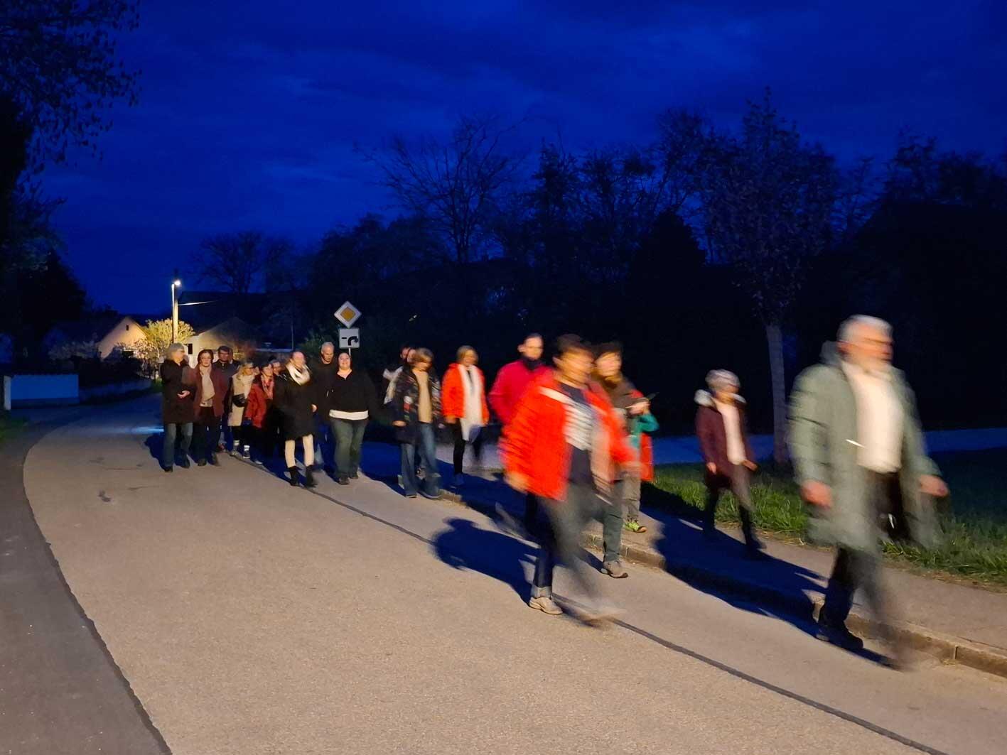 Am Abend des Palmsonntags trafen sich ca. 50 Personen zur Vollmondwanderung am Kirchplatz. Mit Impulsen und zwei Stationen