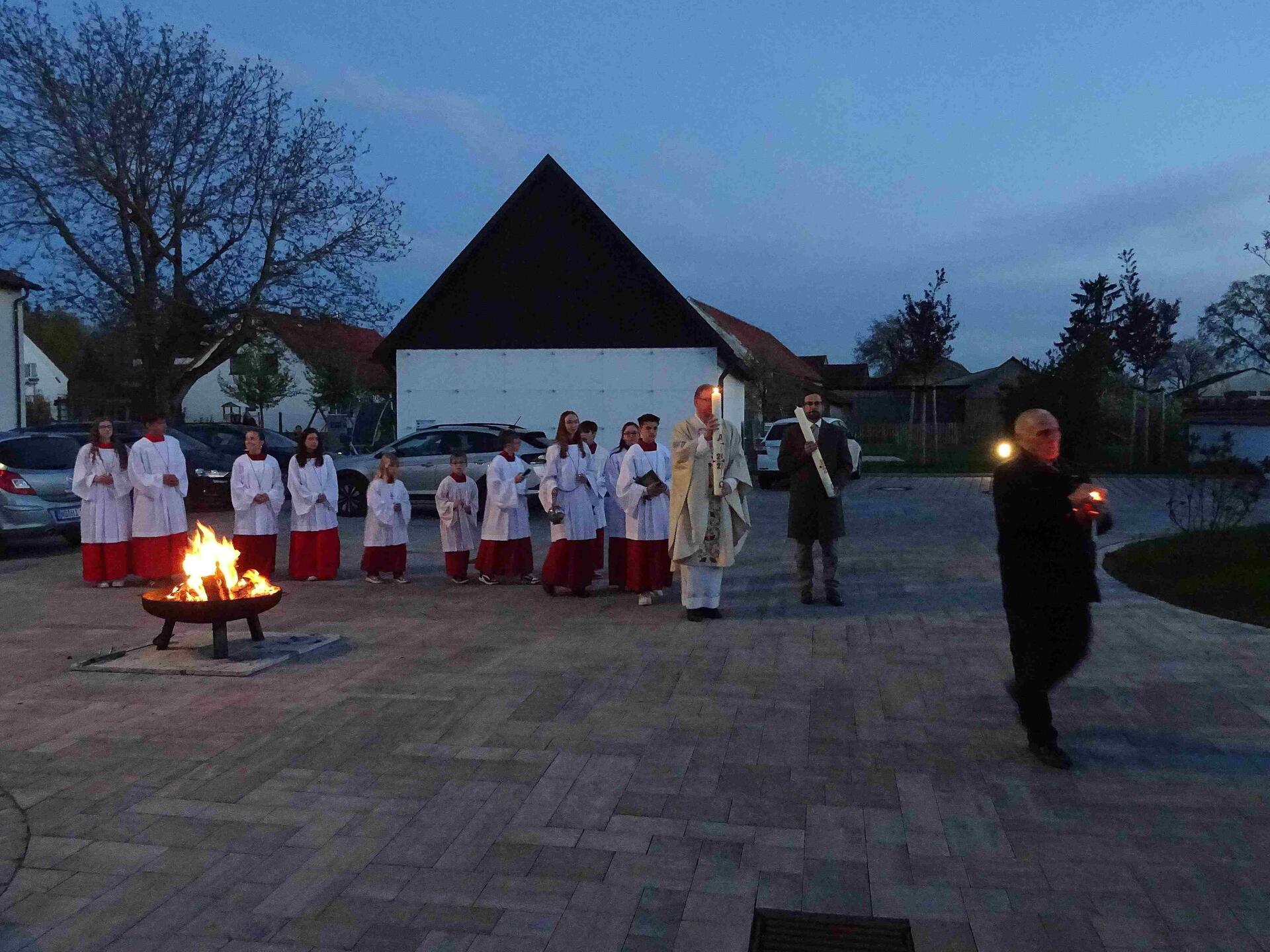 Pfarrer Herbert Kohler feierte mit uns am Karsamstag Abend die Osternacht. Mit dem Einzug des Lichtes wurde es wieder Ostern.