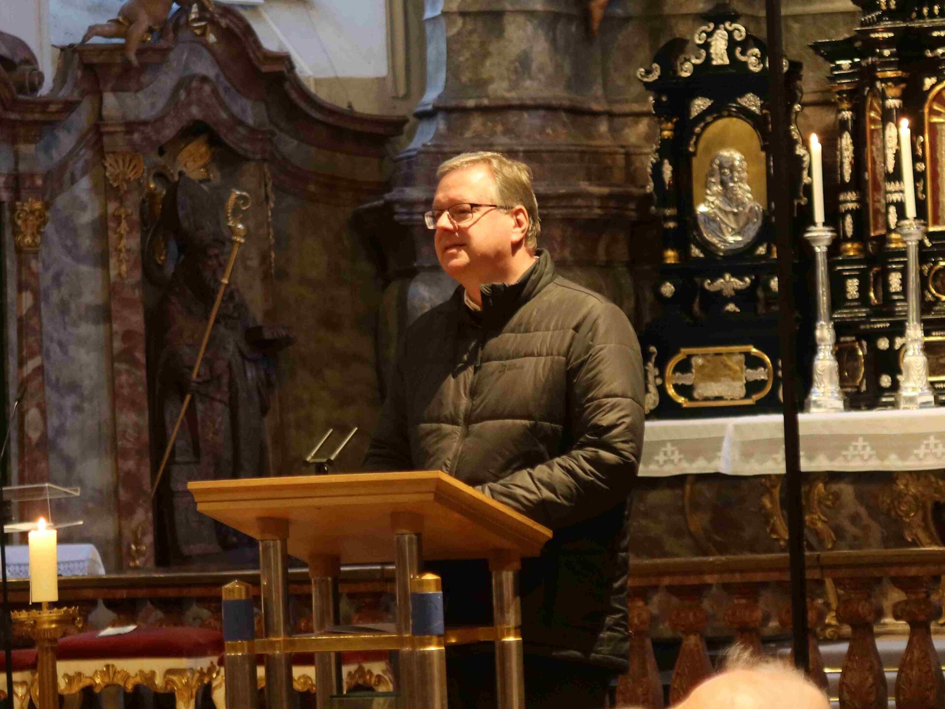 (Andreas Dachs) Am Palmsonntag gab es in der Hofkirche eine ganz besondere Passion. Fünf Erzählerinnen und Erzähler wagten einen Perspektivwechsel und erzählten Abschnitte der Passion aus ganz unterschiedlichen Sichtweisen. So war es spannend zu hören, wie der geheilte Bartimäus den Einzug Jesu in Jerusalem erlebt haben könnte oder wie der römische Hauptmann zu seiner Erkenntnis kam, dass dort am Kreuz Gottes Sohn starb. Außerdem kamen auch der mögliche Blickwinkel der Pförtnerin im Hause des Hohenpriesters, als sie Petrus erkennt und dieser Jesus verleumdet, und einer Frau, die sich auf das Fest freut und Jesus erlebt, wie er voller Wut den Tempel von den Händlern und Geldmachern säubert, zu Wort. Abgerundet wurden alle Perspektiven mit zeitgenössischer Musik, die bei den Zuhörern die Geschichten im wahrsten Sinne des Wortes nachklingen ließ. Am Ende dieses sehr intensiven Perspektivwechsels stand der Tod Jesu und die Erkenntnis des römischen Hauptmanns und vor allem eine große Stille, die so bewegend war, dass erstmal keiner sich traute zu gehen.