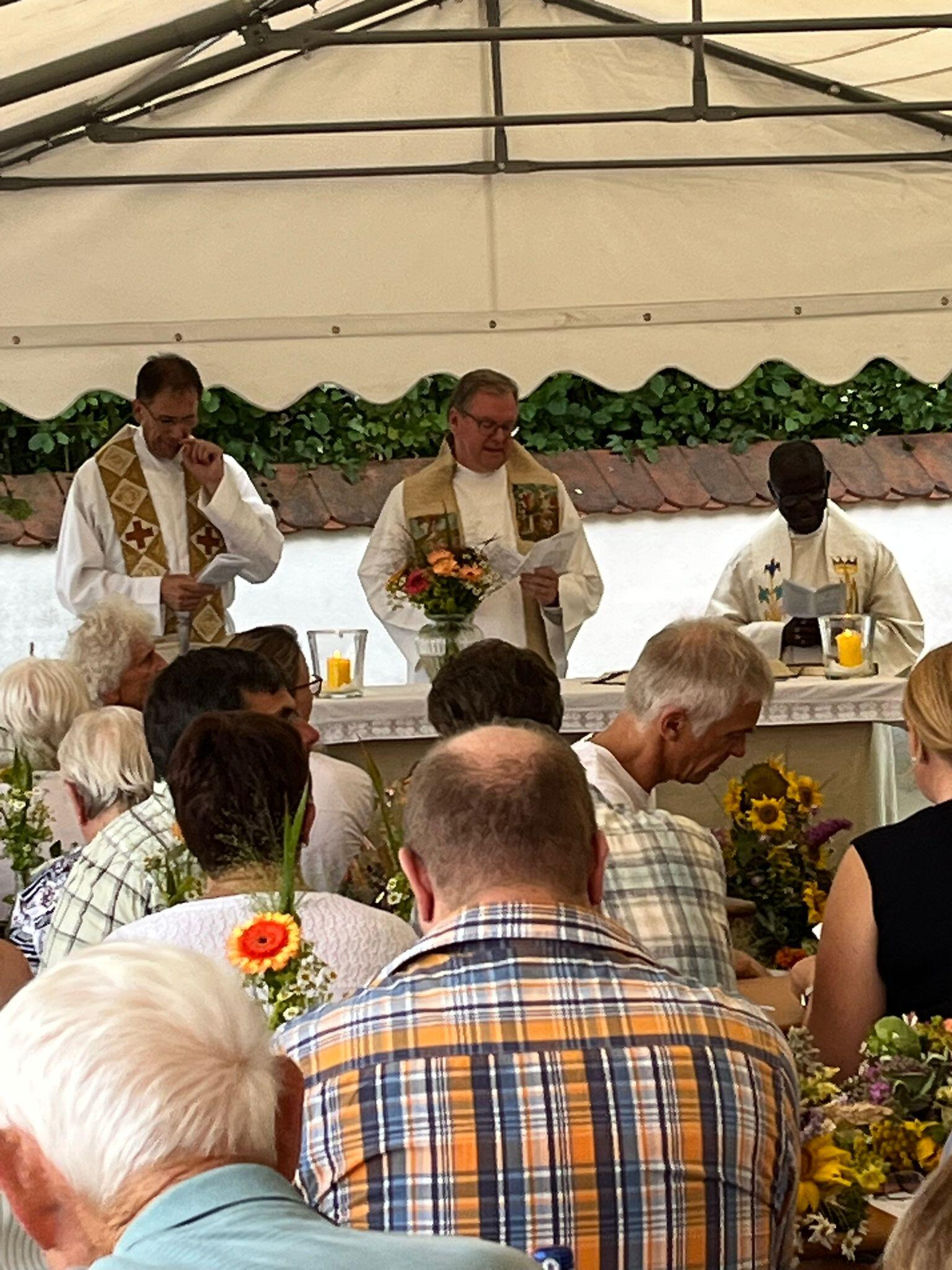 Gebangt hatten sie schon die Bittenbrunner am 15. August, schließlich zogen gerade zu Beginn des Gottesdienstes am frühen Abend dunkle Gewitterwolken über das Zelt im Pfarrgarten. Aber das hielt keinen ab. Zahlreich kamen die Gemeindemitglieder zur Patroziniumsmesse und feierten danach ihr Sommerfest.