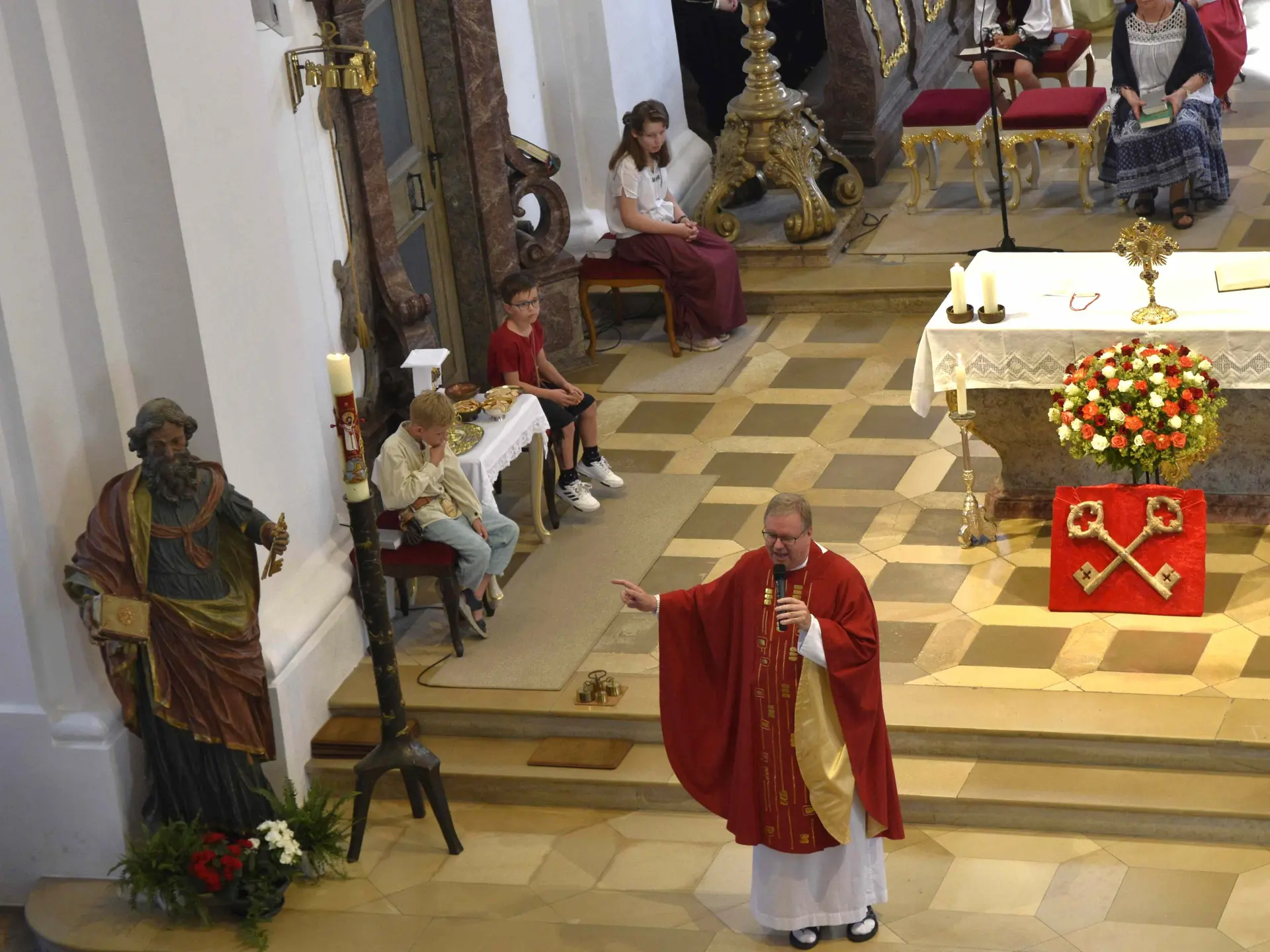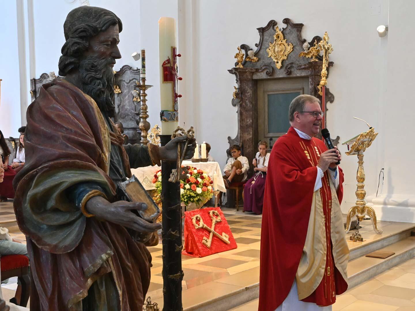 Mit Blick auf die imposante Petrusstatue betrachtete Pfarrer Kohler das besondere Verhältnis von Jesus und dem ehemaligen Fischer. Jesus habe Petrus schon gekannt und seine zwei Seiten gesehen: Einerseits der, der ihn verleumdet, andererseits der glühende Verfechter seiner Sache und der, der mit klarem Bekenntnis sein ganzes Vertrauen auf Jesus setzte. So ein Vertrauen bräuchten wir auch heute im 21. Jahrhundert resümierte Kohler.