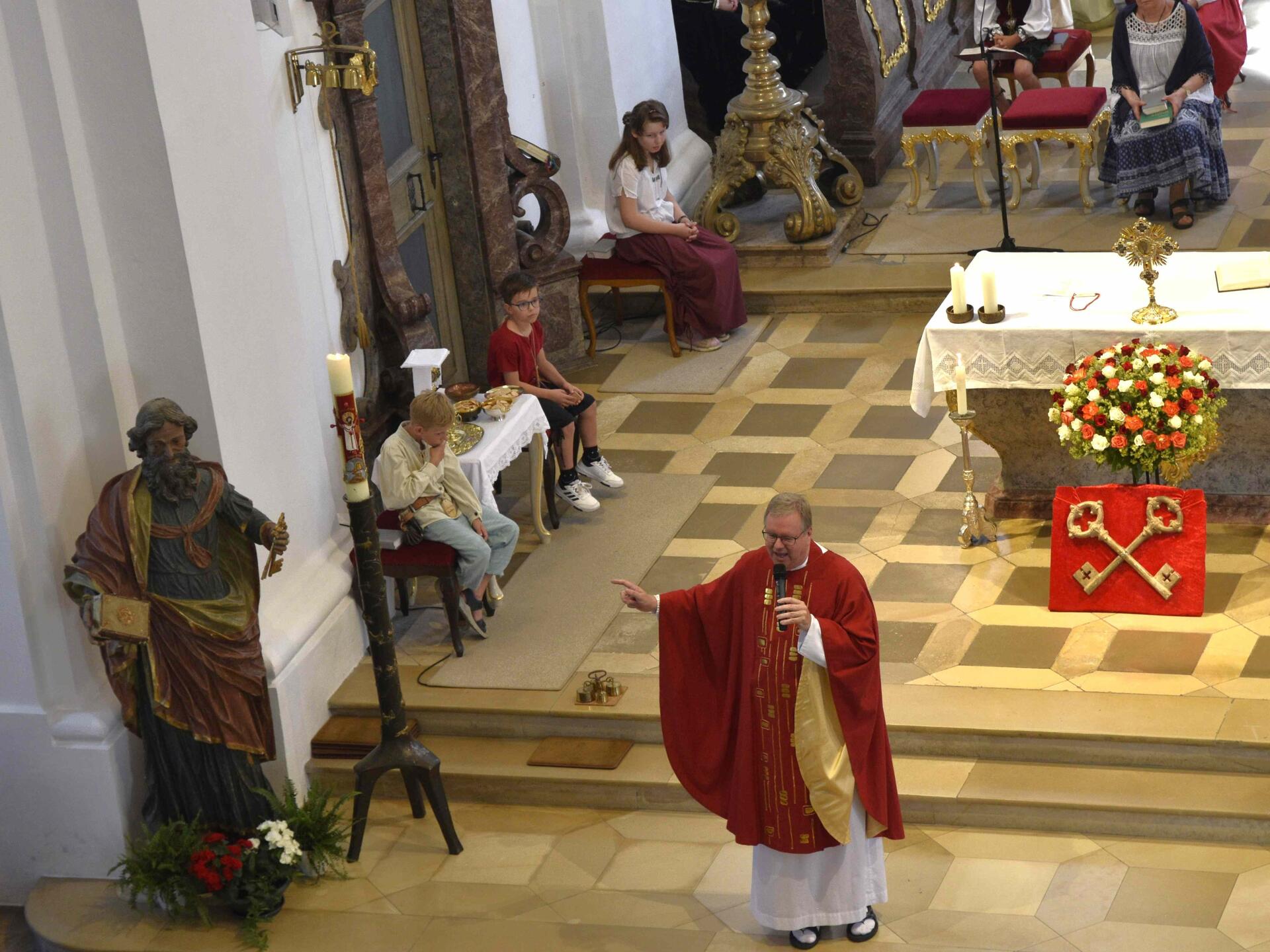 (Christine Jann) Der 29. Juni ist der Gedenktag von Peter und Paul und damit der Tag, an dem die Pfarrkirche St. Peter ihr Patrozinium feiert. Heuer fiel der Tag auch noch auf den ersten Schloßfestsonntag.
