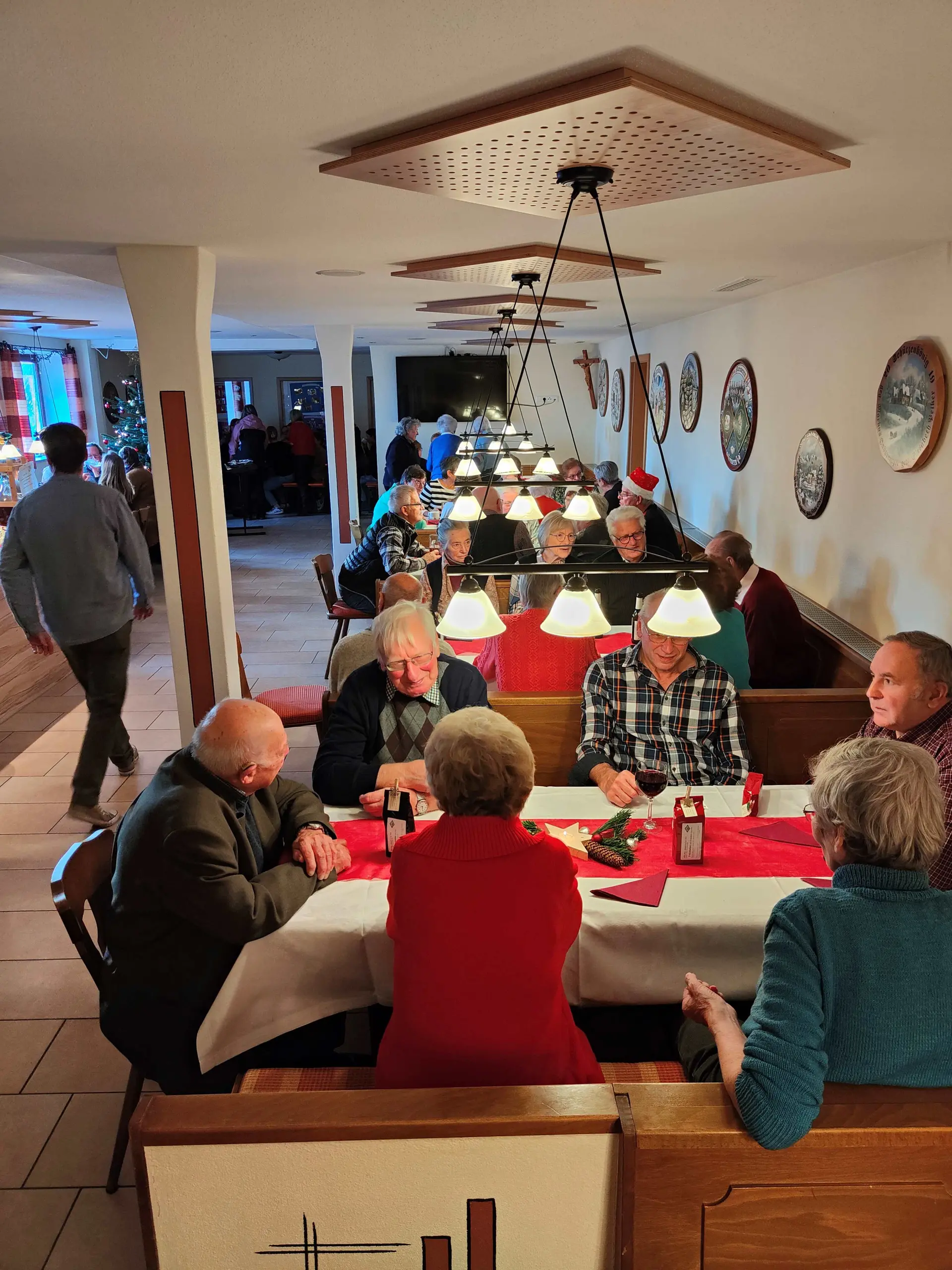 (Petra Karpf) Die Seniorinnen und Senioren genossen einen vergnüglichen Nachmittag im Rohrenfelser Schützenheim. Bei einer Auswahl an Kaffee, Kuchen und herzhaft belegten Brötchen ließen sie es sich gut gehen. Gemeinsam wurden Weihnachtslieder gesungen und der Höhepunkt war der Auftritt der Kindertheatergruppe. Mit ihrem Stück "Beim Schneiderbräu" brachten sie alle zum Lachen und sorgten für beste Stimmung.