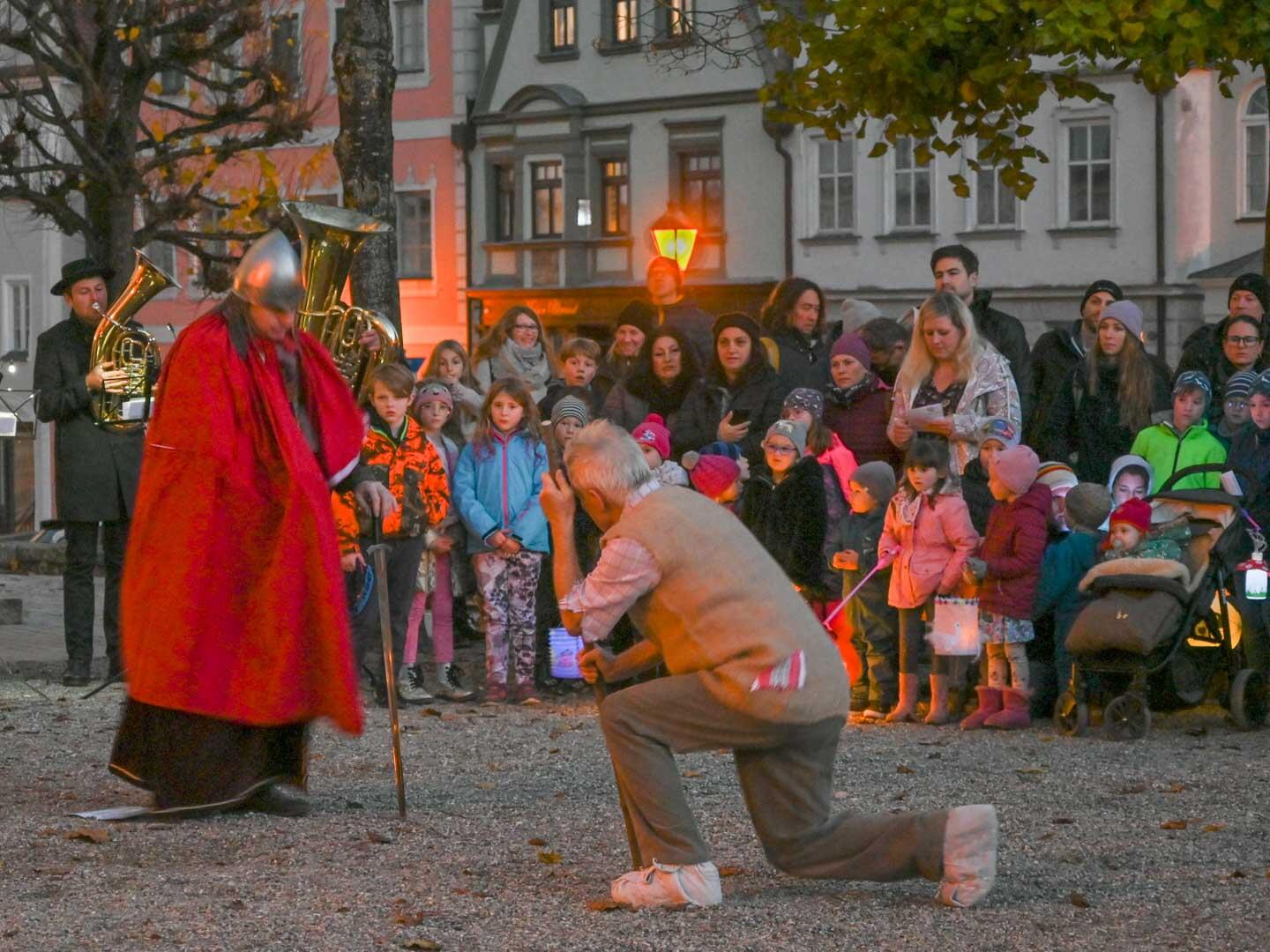 Nachdem die Martinslegende von Manfred Obermeier und Eduard Gernhardt wieder einmal eindrucksvoll inszeniert wurde, zogen die Kinder angeführt von Pfarrer Herbert Kohler mit ihren Laternen um den Platz.