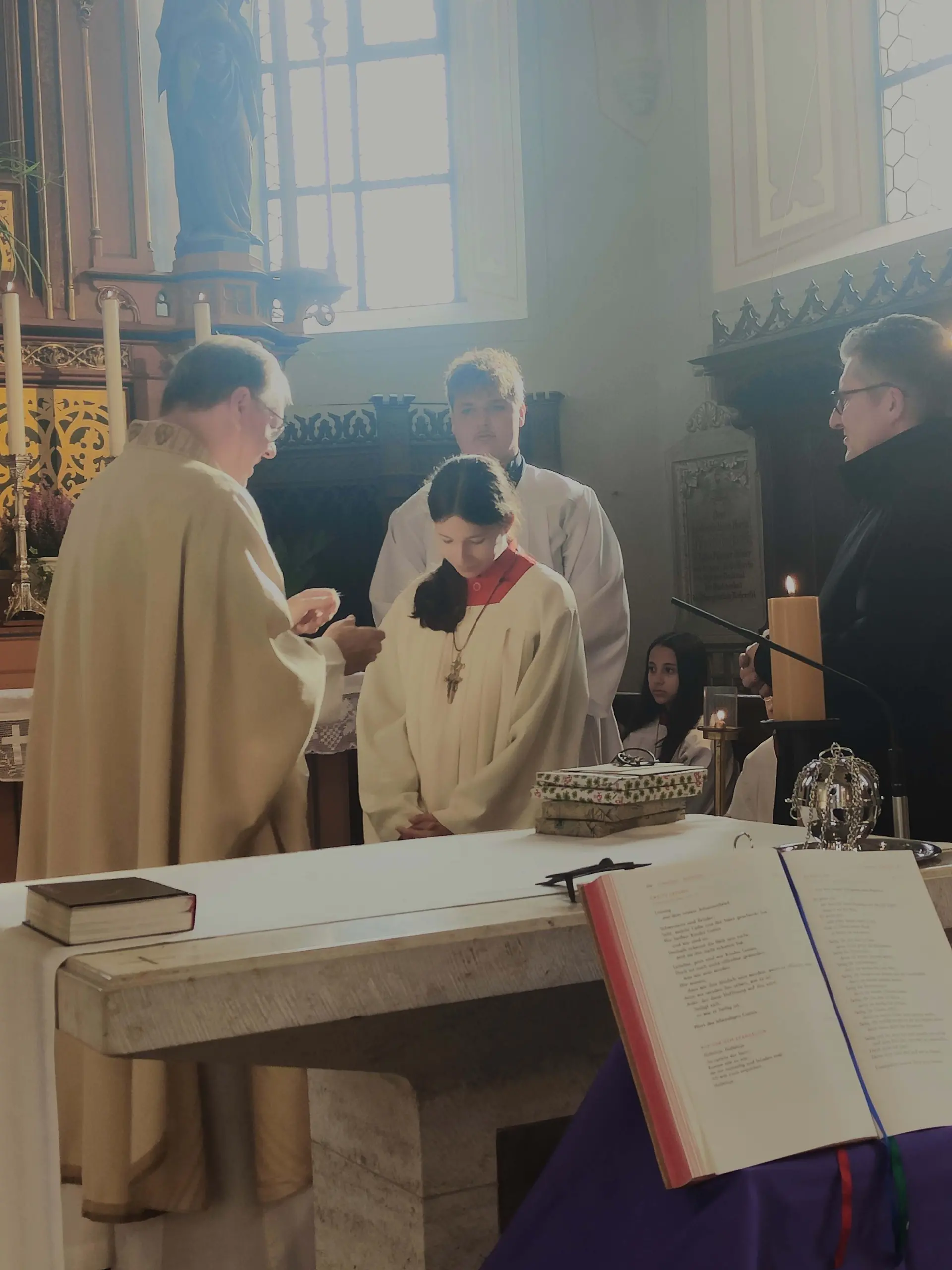 Ein besonderer Moment war die Staffelübergabe: Alena übergab das Amt der Oberministrantin an Hannah Müller, die nun gemeinsam mit ihren Mitministranten Verantwortung für die Gruppe übernimmt.
