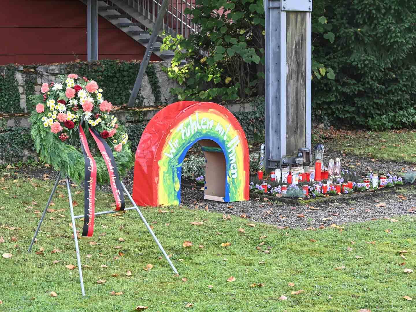 Als Zeichen des Mitgefühls hatte das Wohnheim einen Regenbogen gestalten mit der Inschrift „Wir fühlen mit Ihnen“, der neben dem Kreuz aufgestellt wurde.