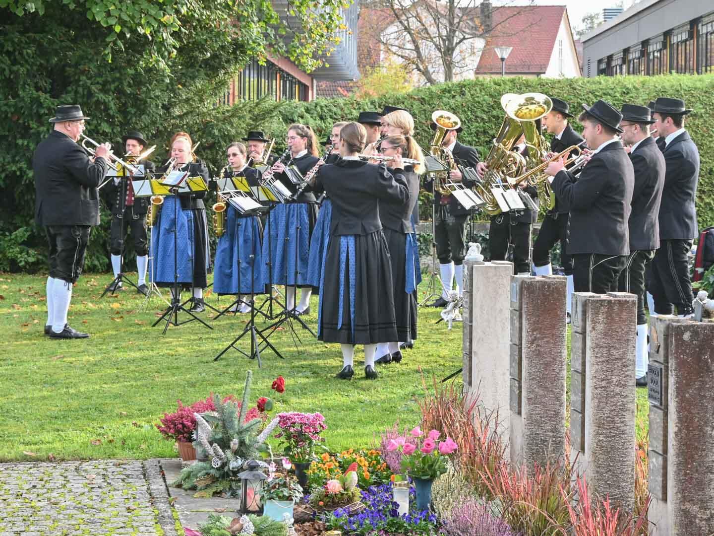 (Christien Jann) Traditionell findet an Allerheiligen nachmittags eine kurze Andacht mit Gräbersegnung am alten Friedhof statt, die auch musikalisch feierlich gestaltet wird von der Stadtkapelle Neuburg.
