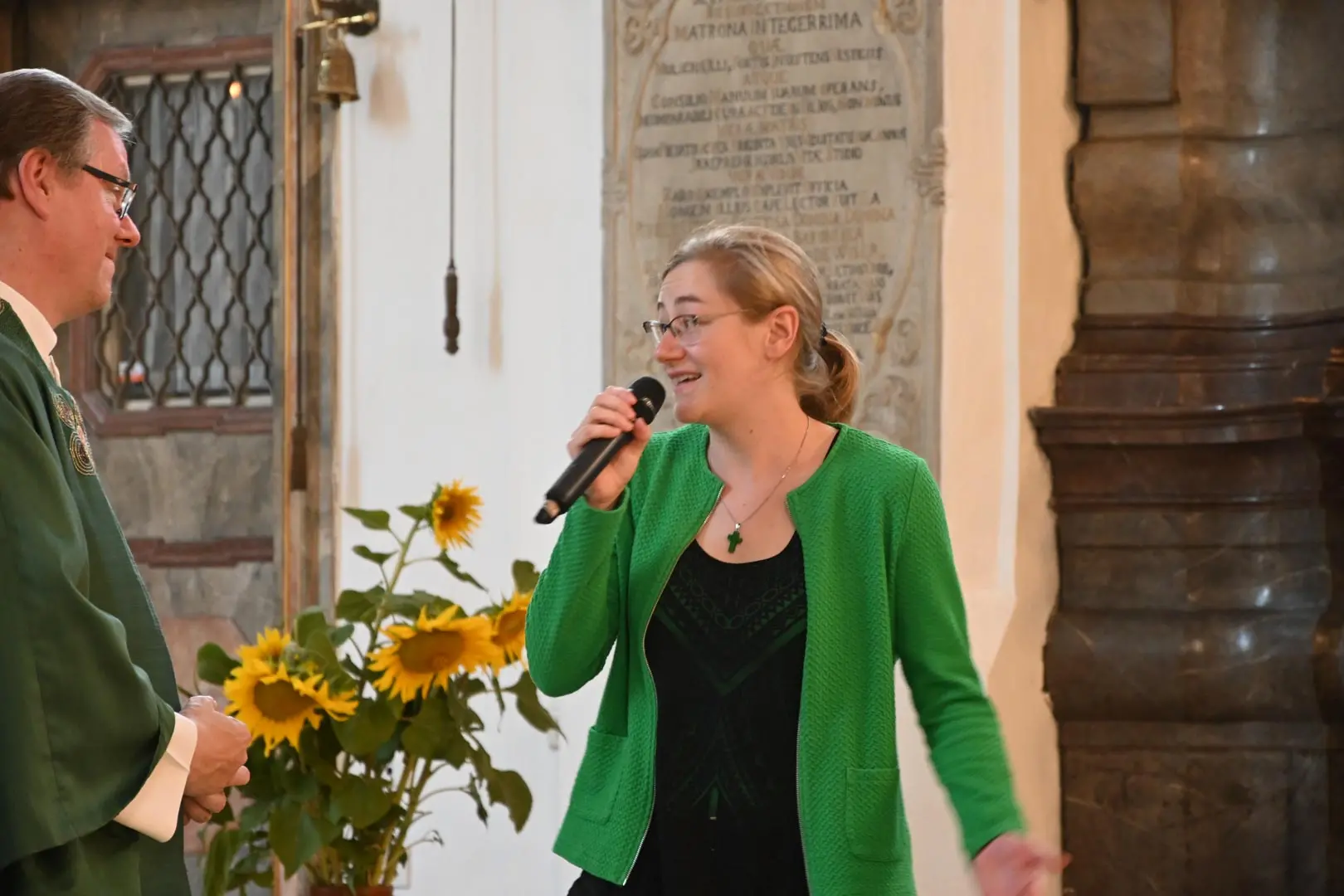 Im Predigtgespräch von Pfarrer Herbert Kohler gefragt, was rückblickend so ihre Highlights gewesen seien, war es für Michaela Hertl natürlich einmal die Jugendarbeit. Auch wenn am Anfang coronabedingt kaum was möglich gewesen sei, habe sich dann doch viel entwickelt und sie denke jetzt sehr gerne an die Arbeit mit den Ministranten, die Minitreffen, Zeltlager und andere Aktivitäten zurück, antwortete sie. Die Möglichkeit auch liturgisch Wortgottesfeiern gestalten zu können und sogar die Karfreitags- und Osterliturgie feiern zu können, sei die zweite ganz besondere Erfahrung für sie gewesen.