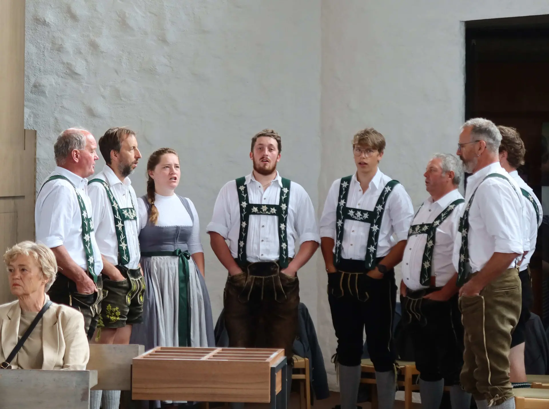(Christine Jann) Nachdem im letzten Jahr die Bergmesse wegen schlechten Wetters abgesagt werden musste, sollte sie 2024 auf jeden Fall wieder stattfinden. Der Wettergott ließ zwar auch am letzten Sonntag keine Bergmesse im Freien zu, aber diesmal war man gewappnet. So wurden die zahlreichen Neuburger, die sich trotz Regen mit Bus oder privat auf den Weg ins Gunzesrieder Tal gemacht hatten, mit einem nicht weniger beeindruckenden Gottesdienst in der Seifriedsberger Kirche belohnt.