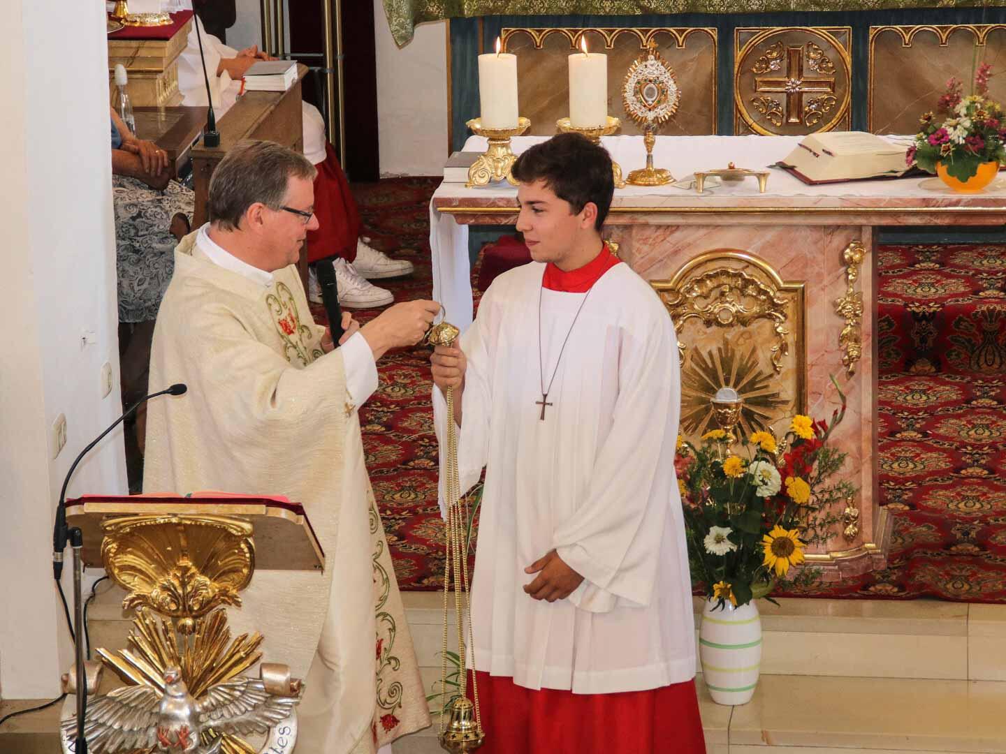 Im Anschluss an die Predigt wurde Oberministrant Josef Kugler verabschiedet. Pfarrer Kohler bedankte sich bei ihm für seine Arbeit - seinen Dienst am Altar und überreichte ihm ein goldenes Weihrauchfass.