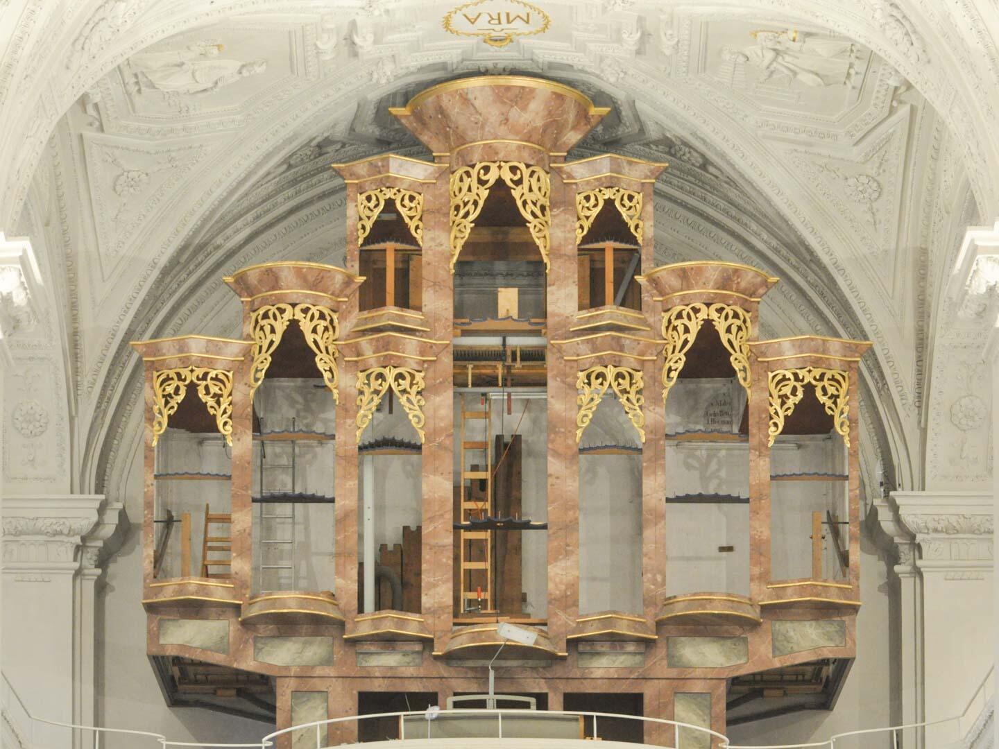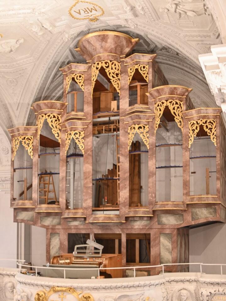 (Wolfgang Böhm) Sie haben die leere Orgel in der Hofkirche noch nicht gesehen? Nur das Gehäuse, der Prospekt ist sichtbar. Prospekt ist abgeleitet vom lat. prospectus = Anblick (wikipedia.org). Passt gut.
