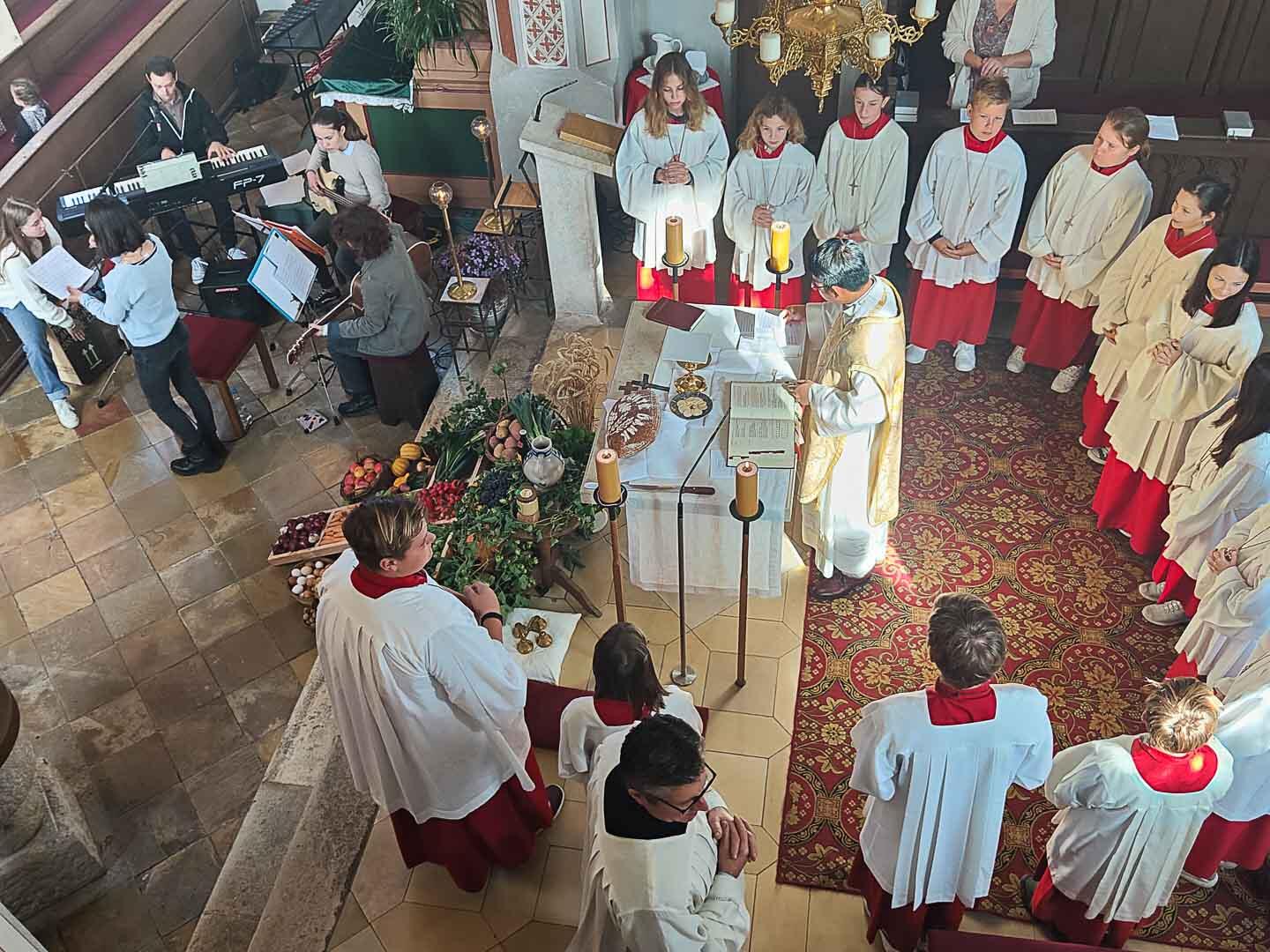 (Petra Karpf) Am Erntedank Sonntag erlebten wir in unserer Kirche Maria Heimsuchung ein außergewöhnliches Erntedankfest. Die Gemeinde versammelte sich, um gemeinsam für die reiche Ernte des Jahres zu danken und zugleich ein musikalisches Fest zu genießen.