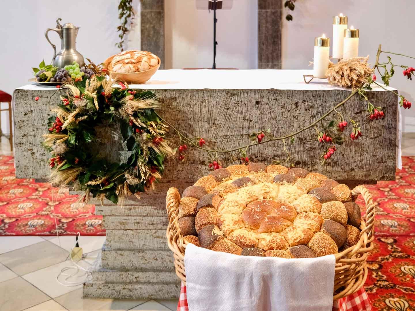 Auch die Gottesdienstbesucher gingen nicht leer aus. Der Erntedank-Brotlaib wurde am Erntedank-Sonntag gerecht an alle verteilt.