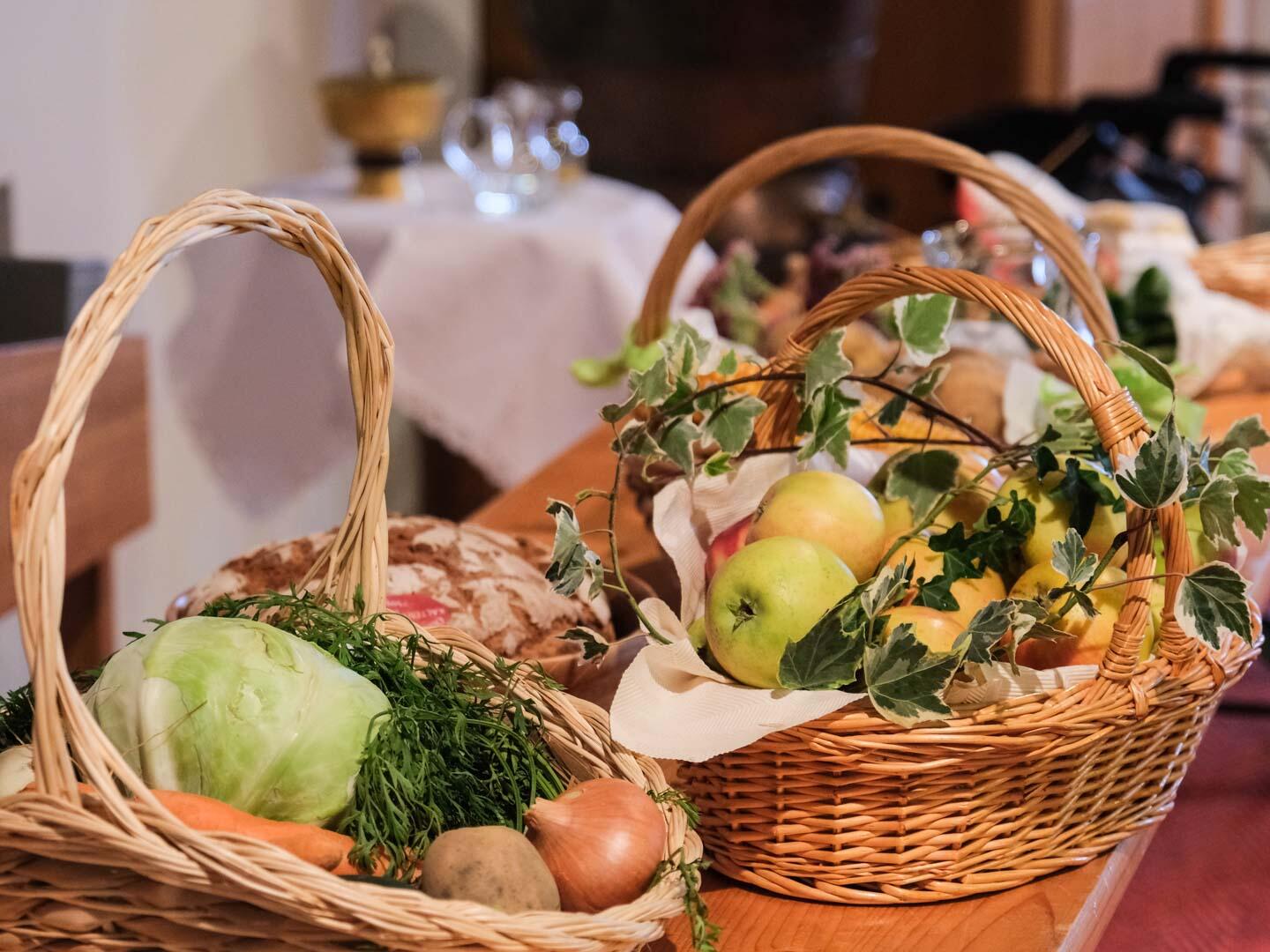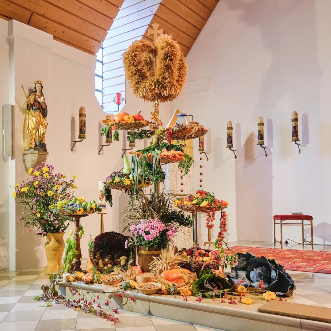 Die Erntedankschalen wurden von dem Mesnerehepaar Rita und Alfons Billmair gestaltet, dazu hatten viele Gartenbesitzer in Sehensand Früchte gespendet.