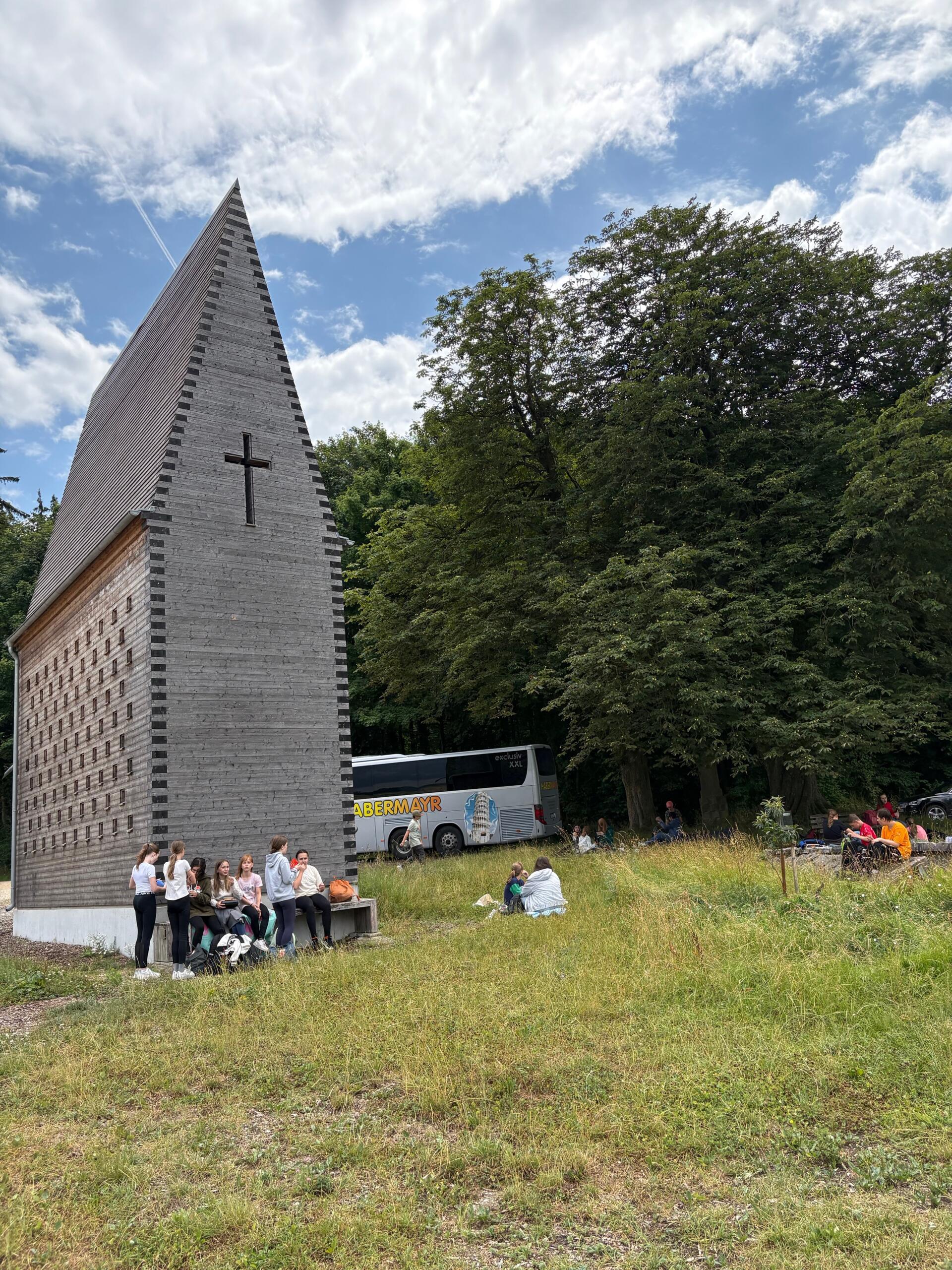 Auf dem Rückweg haben wir noch einen besonderen Halt an der Wegkapelle von Christoph Mäckler, einer der sieben Kapellen der Denzel Stiftung eingelegt. Ein Ort, der zum Innehalten einlädt.