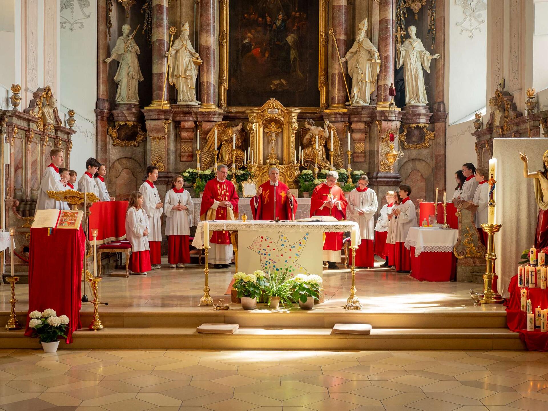 Im feierlichen Gottesdienst in der Pfarrkirche Hl. Geist legte der Firmspender den Jugendlichen die Hände auf und salbte sie mit Chrisam.