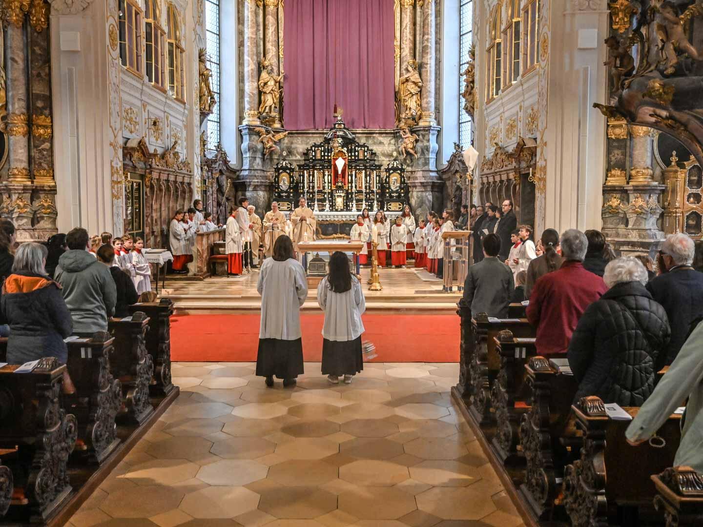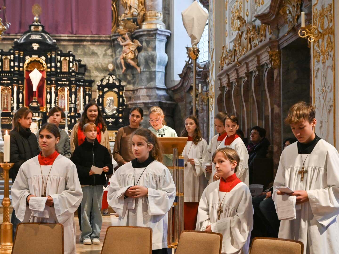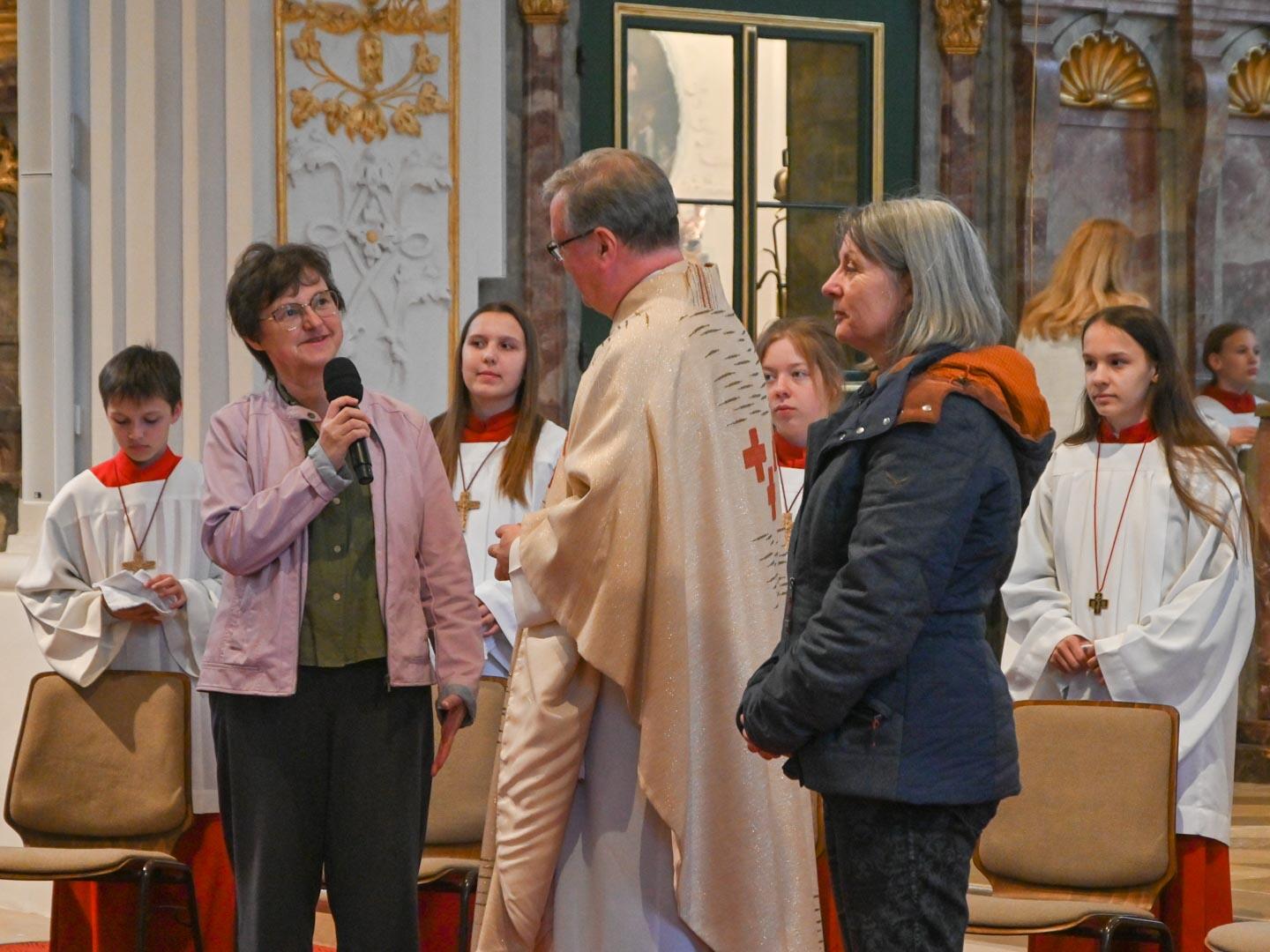 Pfarrer Herbert Kohler, der zusammen mit Msgr. Wengert und Kaplan Reißner die Feier zelebrierte, nutzte die Gelegenheit in der vollen Hofkirche und sprach den vielen in der Kirche Engagierten seinen Dank für ihre zahlreichen Dienste aus. Er dachte an die Ministranten, von denen an die 40 mit dabei waren, die Mesner, die Lektoren, die Kommunionhelfer, die Pfarrgemeinderäte und Kirchenverwaltungsmitglieder, die Musiker und Chormitglieder und einfach an alle, die sich in irgendeiner Weise einbringen.